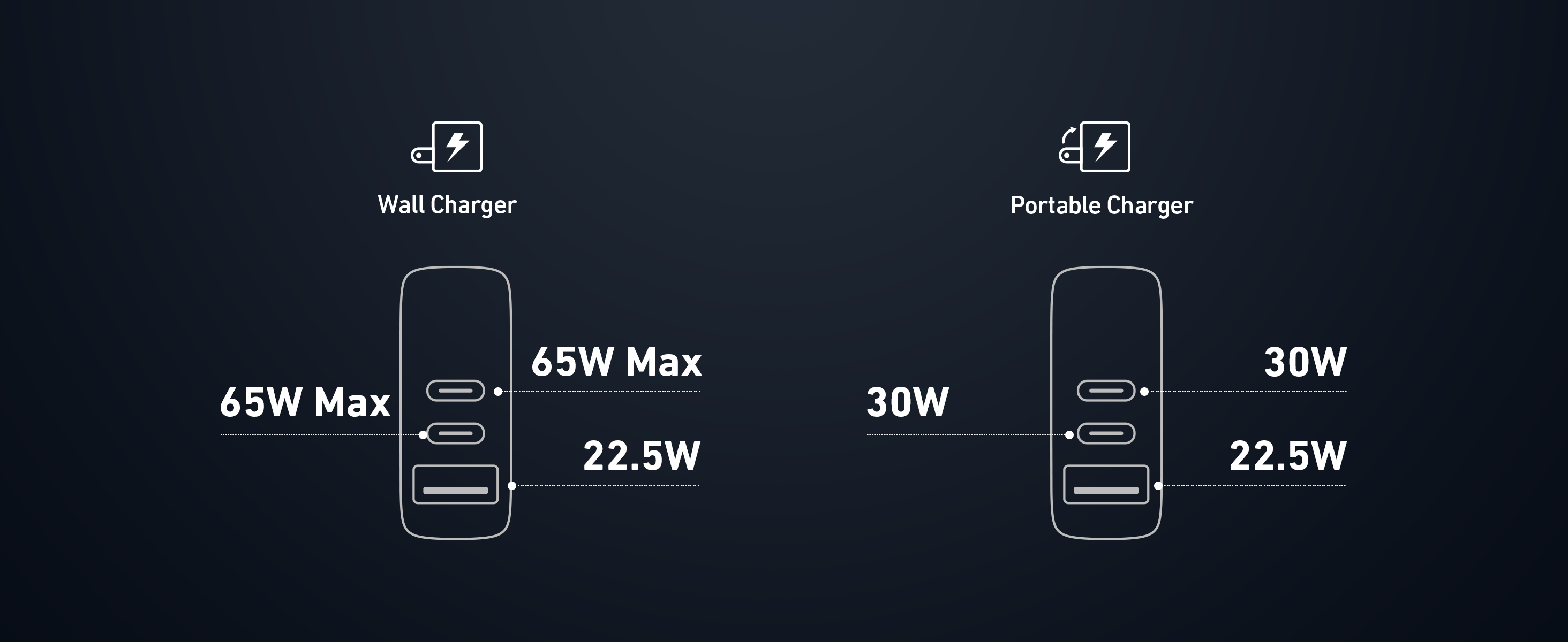 Tận hưởng những điều tốt nhất của thế giới sạc với bộ sạc tường 65W và pin sạc dự phòng 10.000mAh chỉ trong một sản phẩm duy nhất. Tính năng nổi trội nhất là chỉ cần cắm trực tiếp vào ổ cắm là đã có thể nhanh chóng sạc lại thiết bị, giúp bạn không còn phải chuẩn bị thêm cáp & củ để sạc lại pin dự phòng như thông thường nữa.