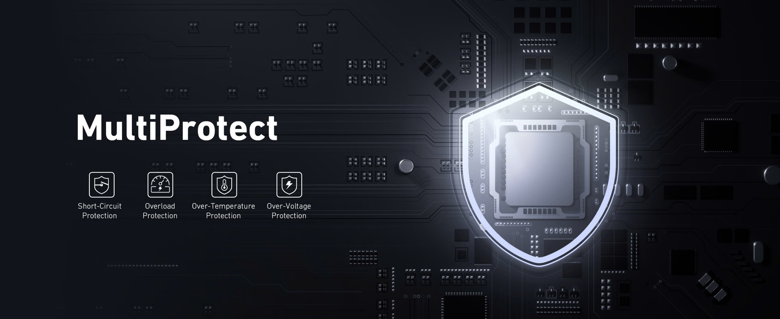 Được trang bị hệ thống an toàn Anker MultiProtect cùng với ActiveShield™ 2.0 theo dõi nhiệt độ 3.000.000 lần mỗi ngày, kiểm soát nhiệt độ, bảo vệ quá dòng OCP và quá áp OVP, giảm thiểu tình trạng đoản mạch hay xảy ra nguy cơ quá nhiệt, chập cháy, đảm bảo an toàn cho cả thiết bị và người sử dụng trong suốt quá trình sử dụng.