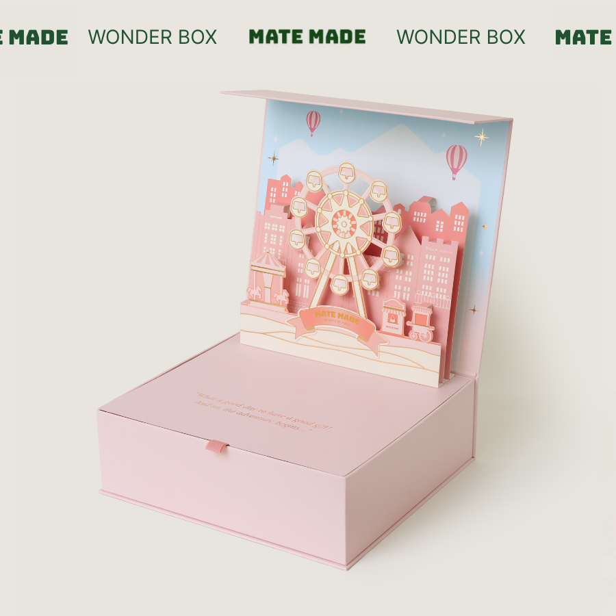 Một món quà đẹp không chỉ nằm ở giá trị vật chất, mà còn chứa đựng sự tinh tế, sự thấu hiểu và tình cảm chân thành của người tặng. Chính vì vậy, Mate Made mang đến hộp quà tặng đặc biệt với thiết kế Wonderland – như một cánh cửa mở ra thế giới diệu kỳ, nơi mỗi cô gái đều được nâng niu và trân trọng.