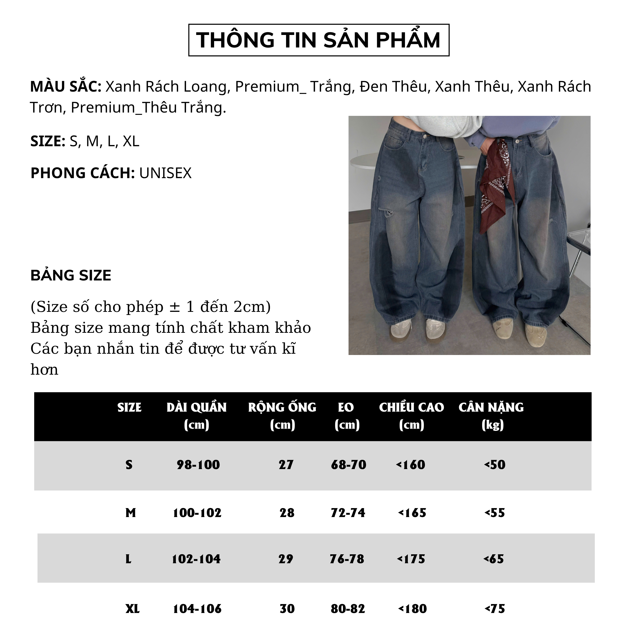 - Chất vải: Jeans Denim.