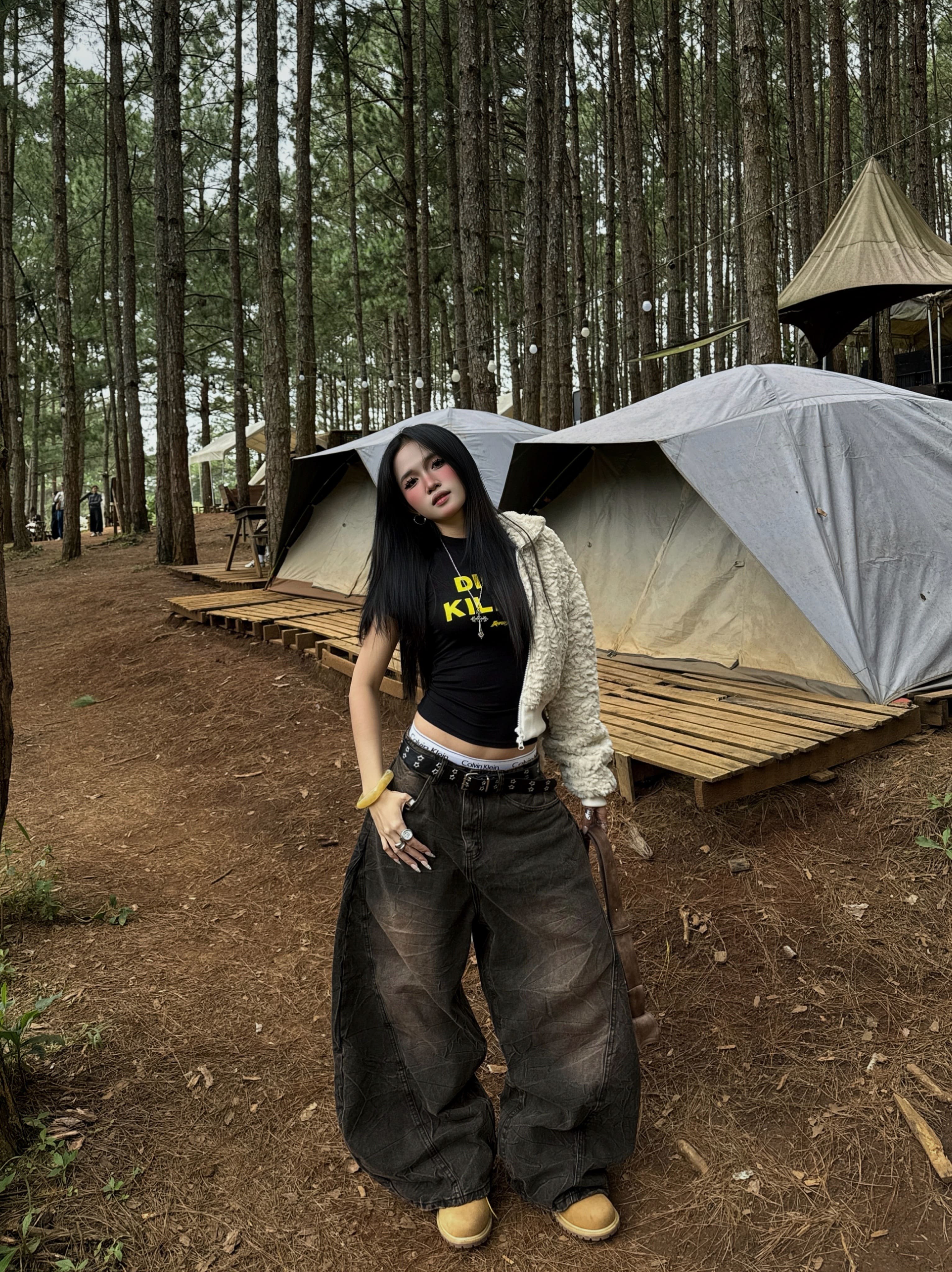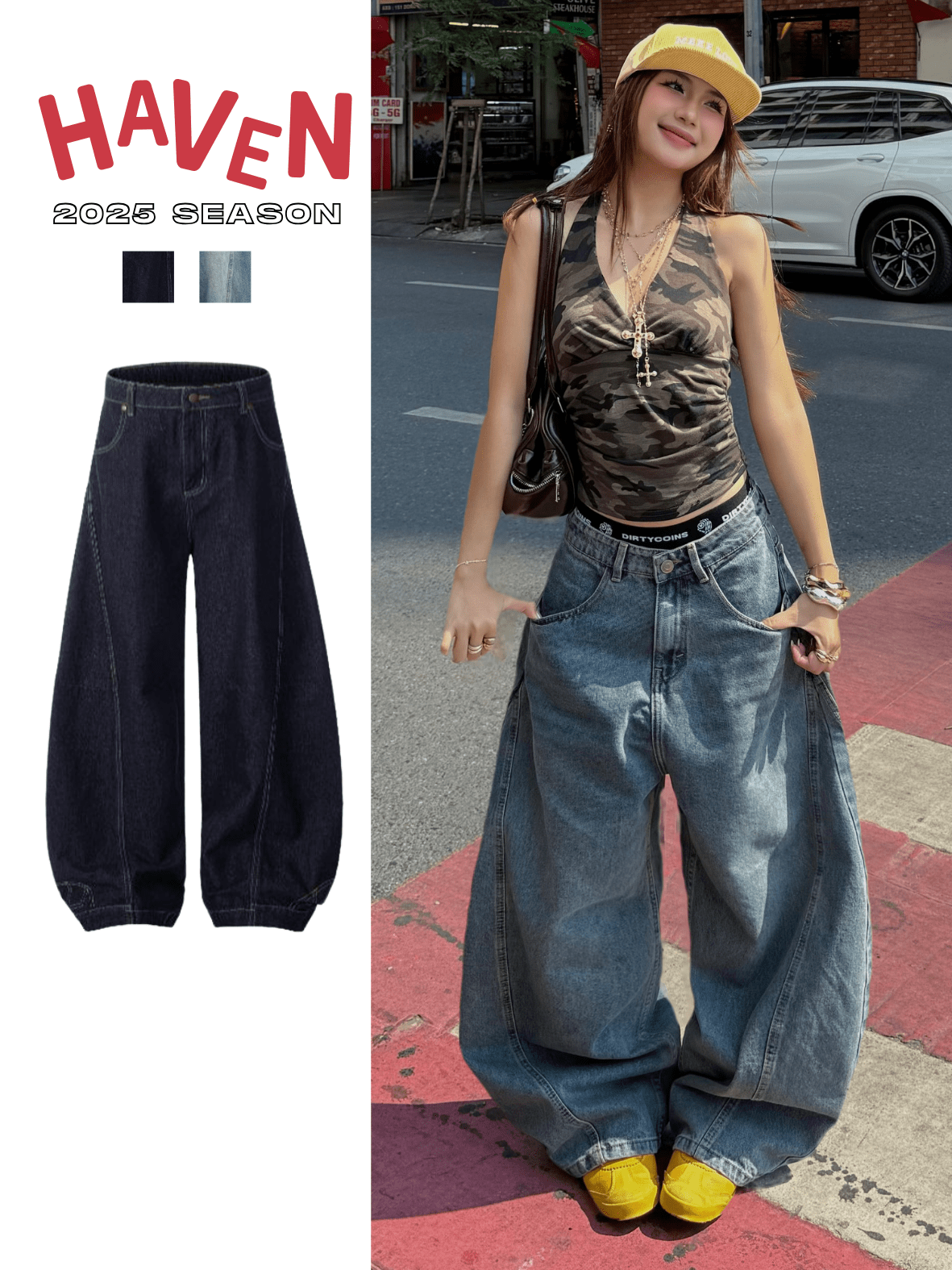 Quần jeans ống cong Haven Studio nam nữ form rộng màu xanh đen và wash new phong cách đường phố