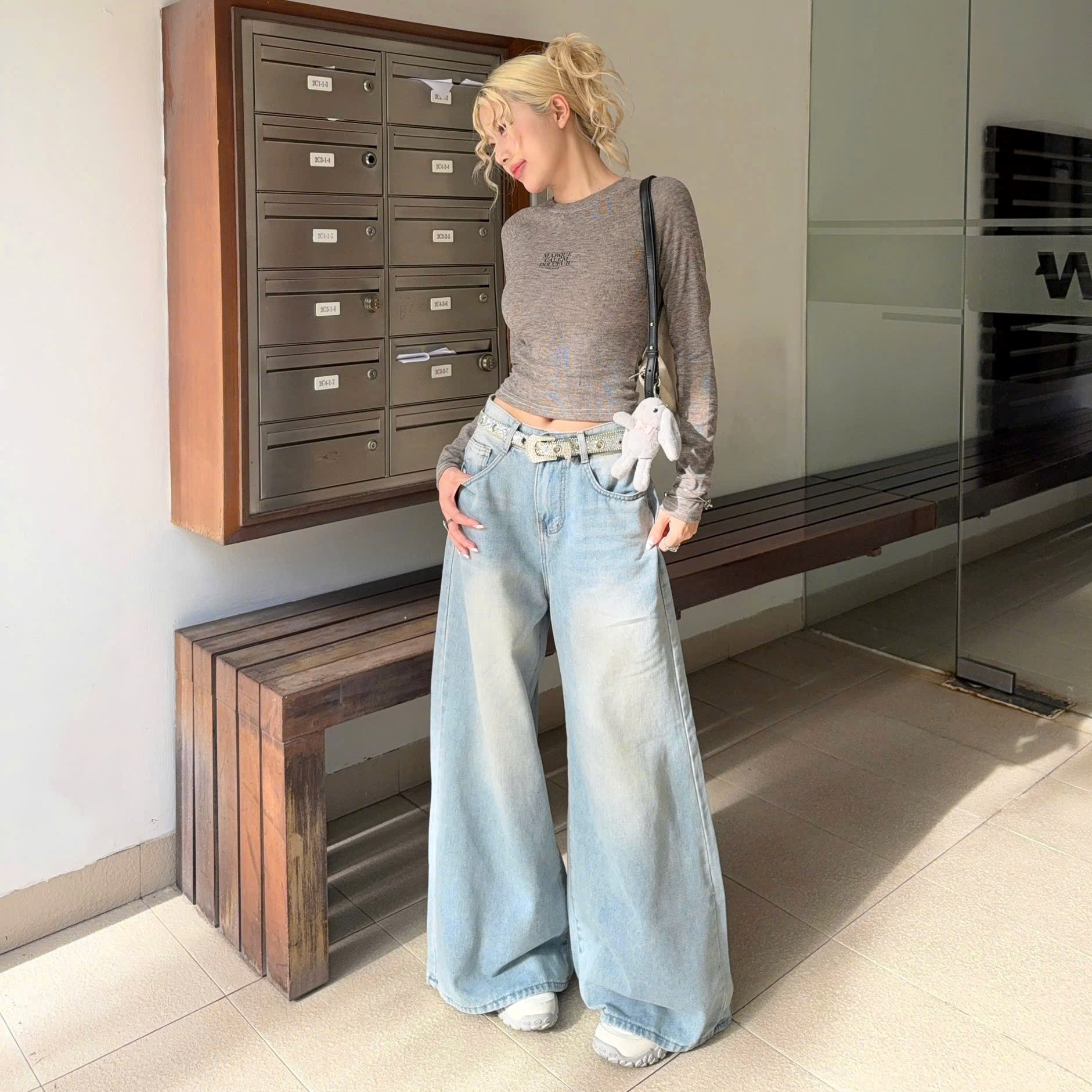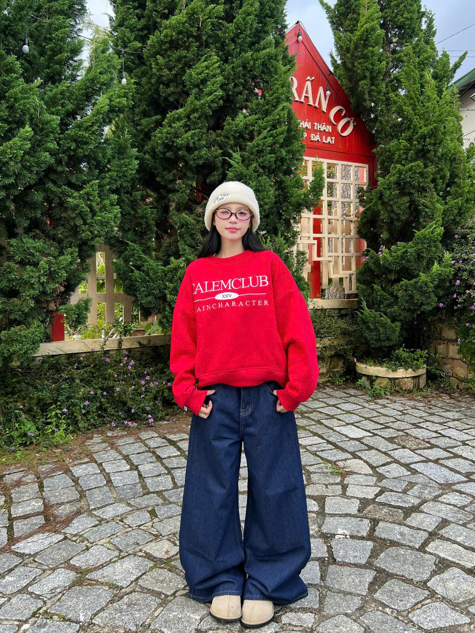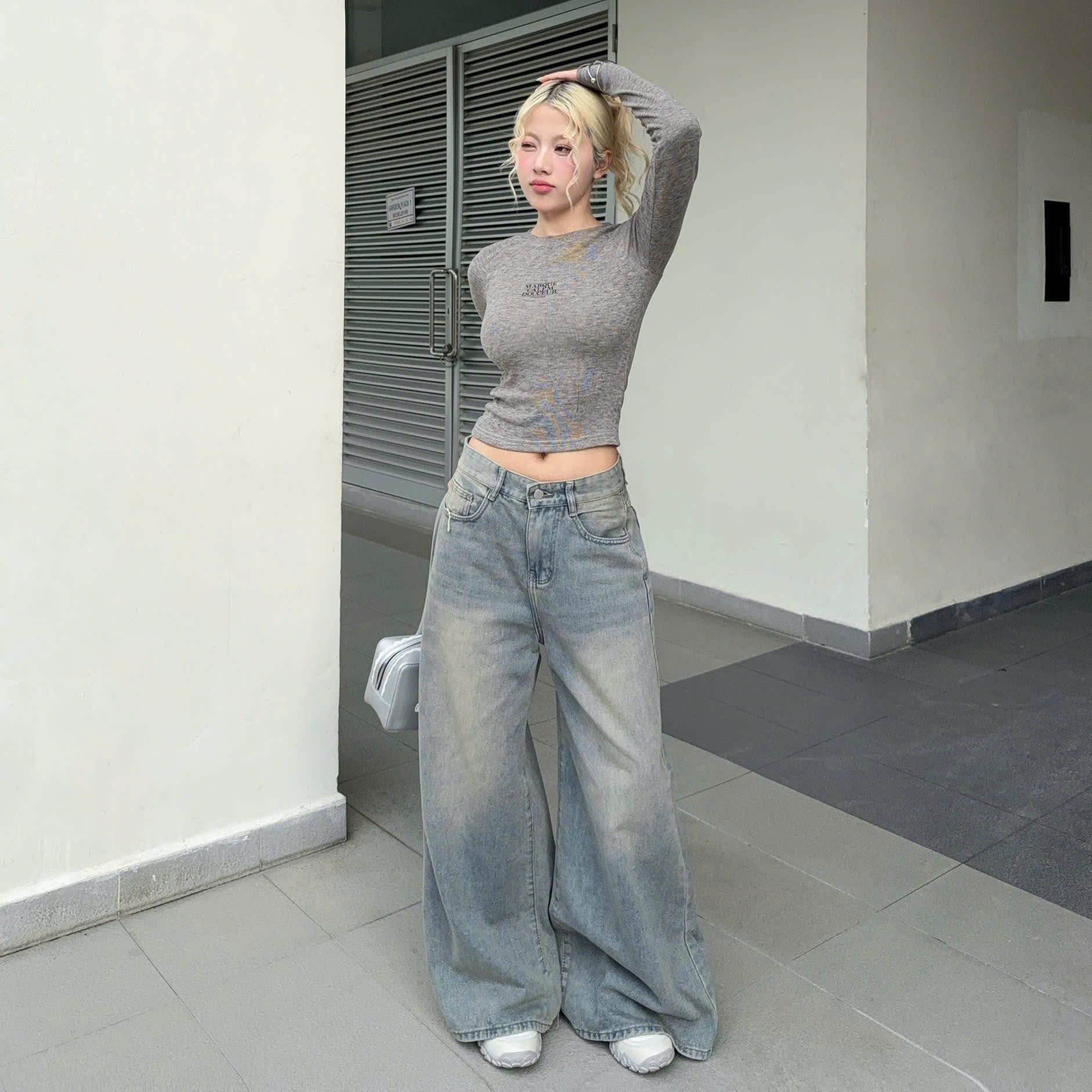 Quần ống rộng, cạp cao có thể mặc trên hoặc ngang rốn tùy sở thích nha khách ơi