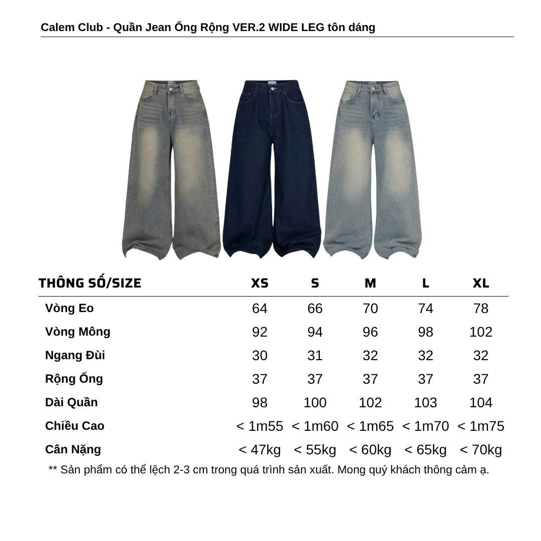 Quần Jeans Ống Rộng Ver 2 WIDE LEG Calem.Club tôn dáng cạp cao form unisex nam nữ