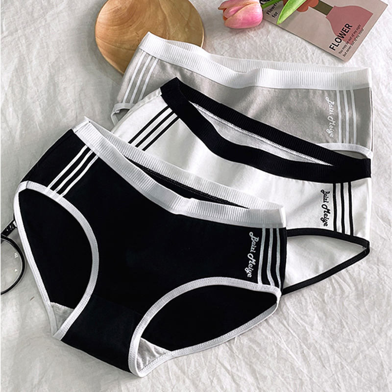 Quần lót nữ cotton cạp vừa ôm dáng - Quần chip nữ viền sọc cá tính, đáy may không cộm ZANABRA L520