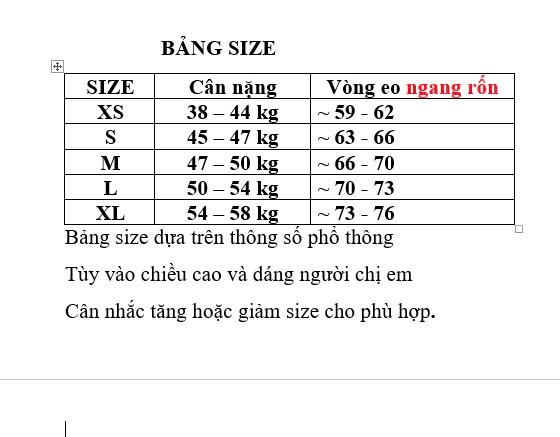 SIZE XL(54-58KG) , VÒNG EO < 76
