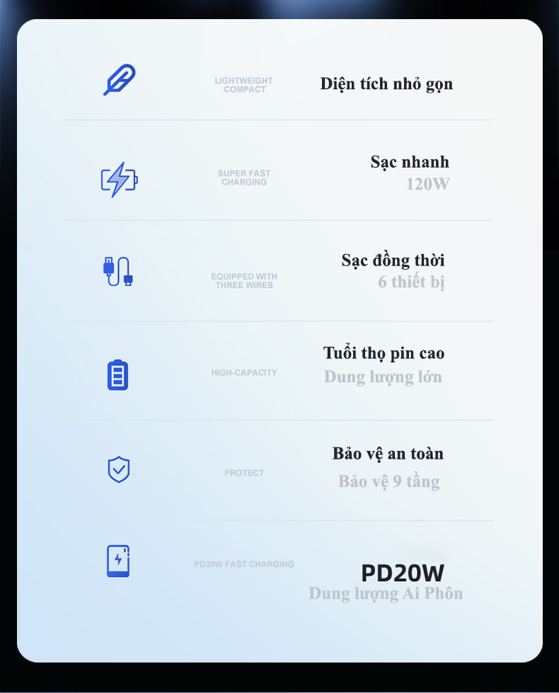 Sạc nhanh đa nền tảng (Multi protocol Fast Charging) - hỗ trợ tất cả các chuẩn sạc nhanh, SamSung, Huawei & các thiết bị Android khác,…