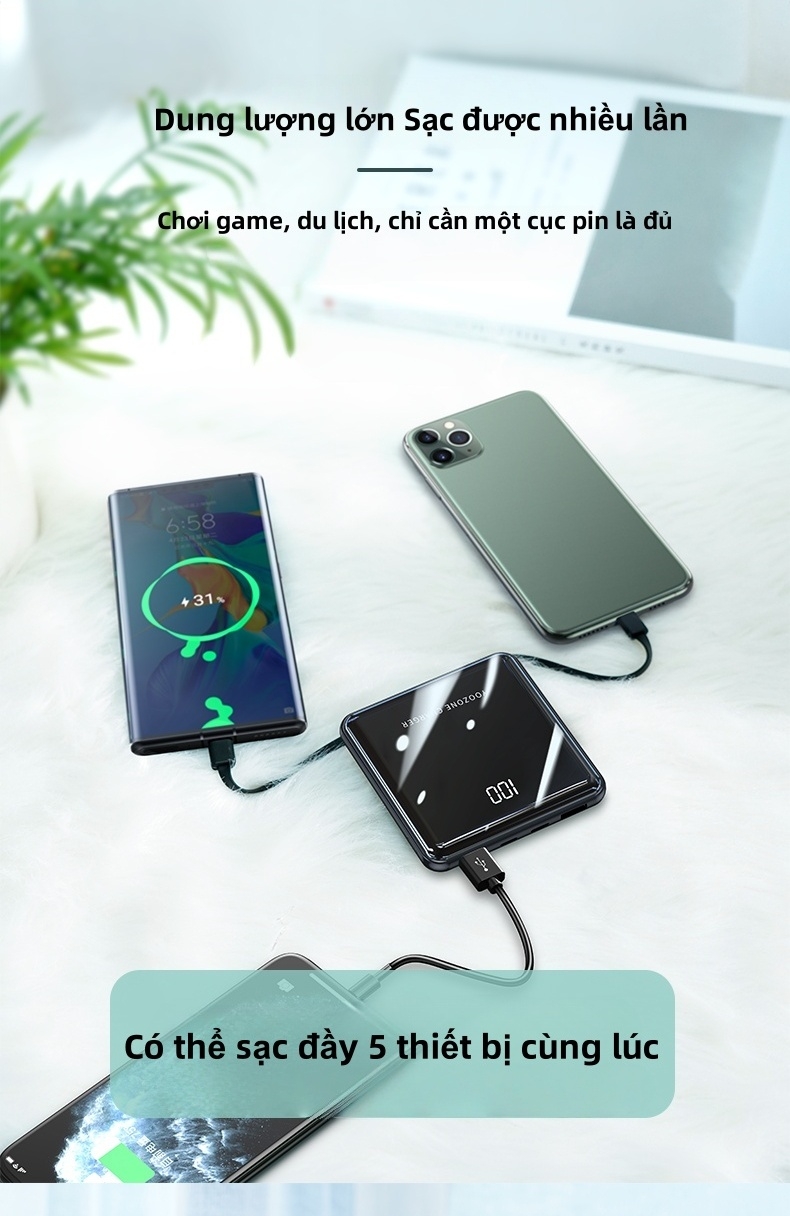 Pin , điều chỉnh điện áp thông minh, đảm bảo thiết bị của bạn luôn được sạc đầy suốt cả ngày. Dù là điện thoại, máy tính bảng hay thiết bị điện tử khác, luôn sẵn sàng và không lo hết pin.