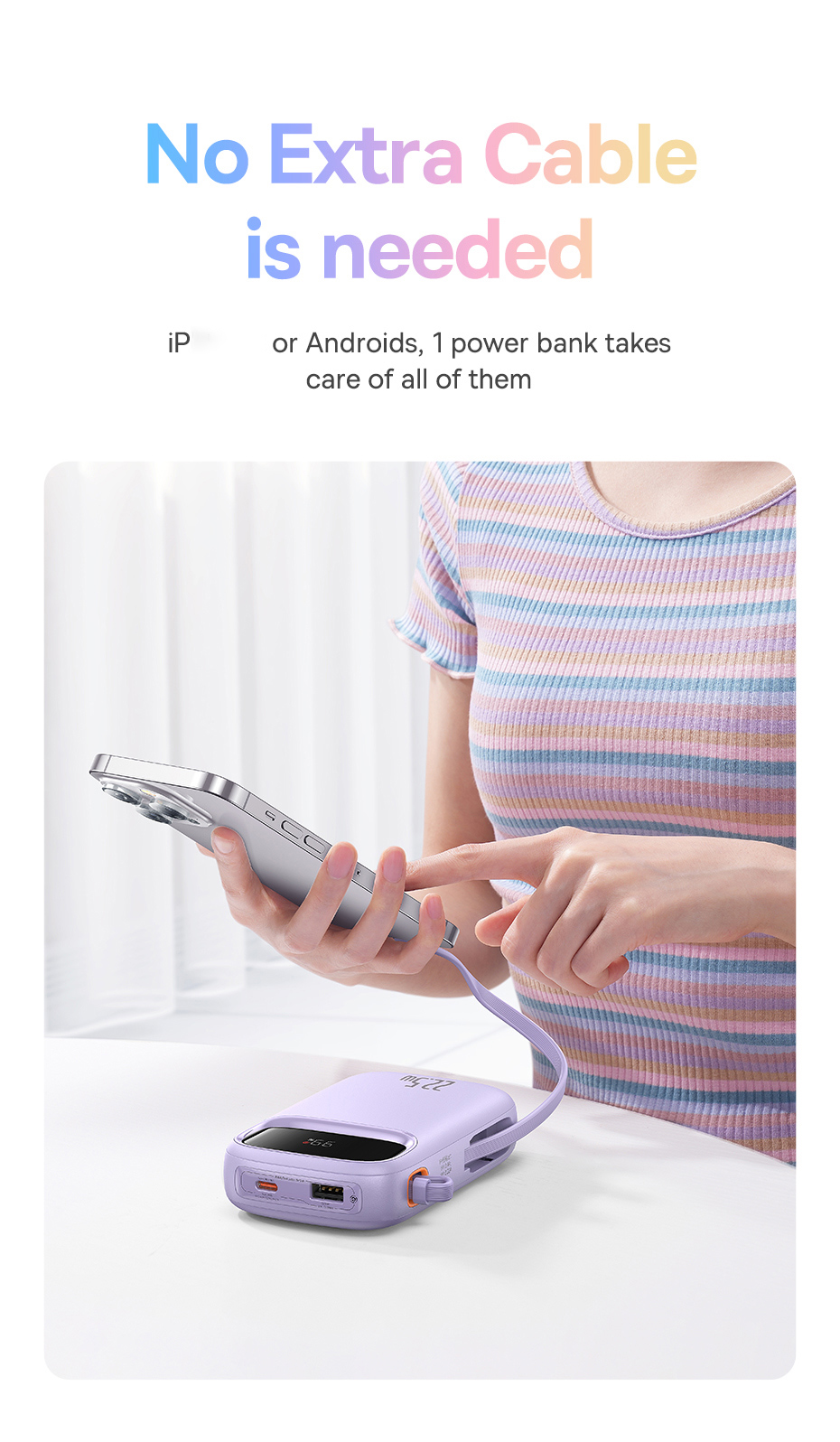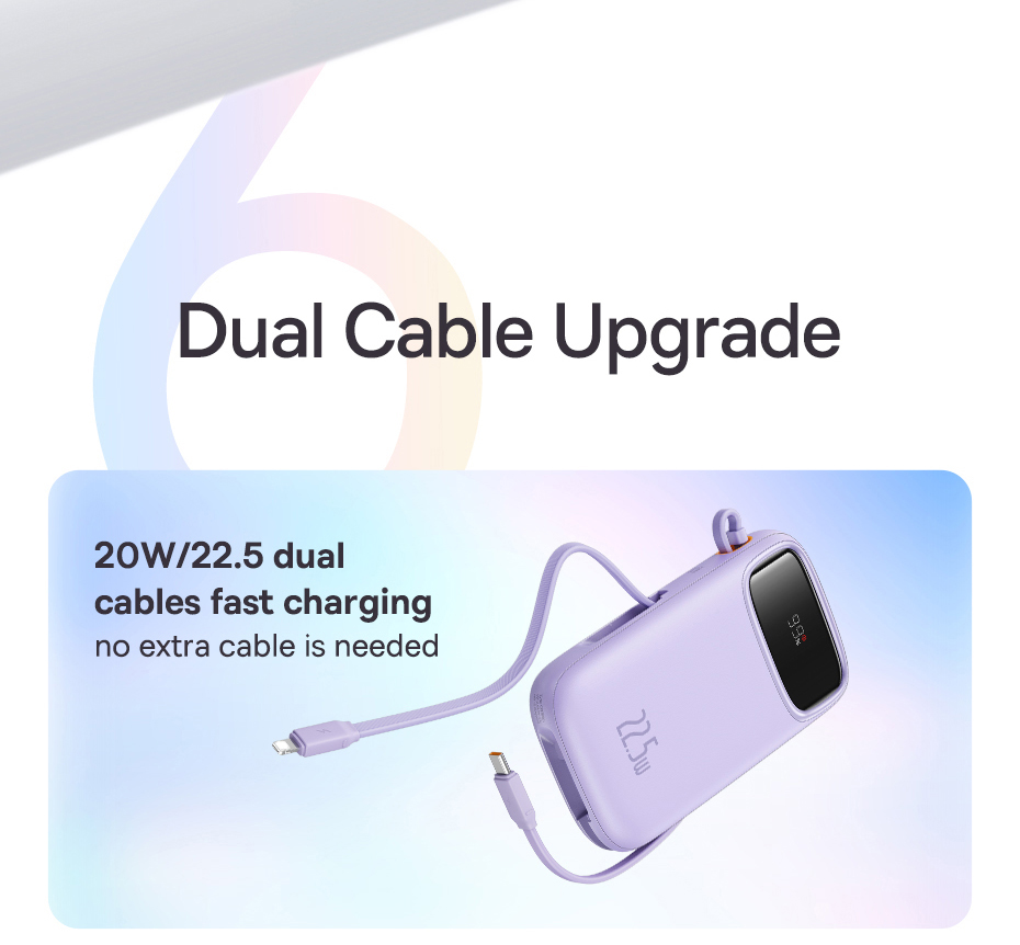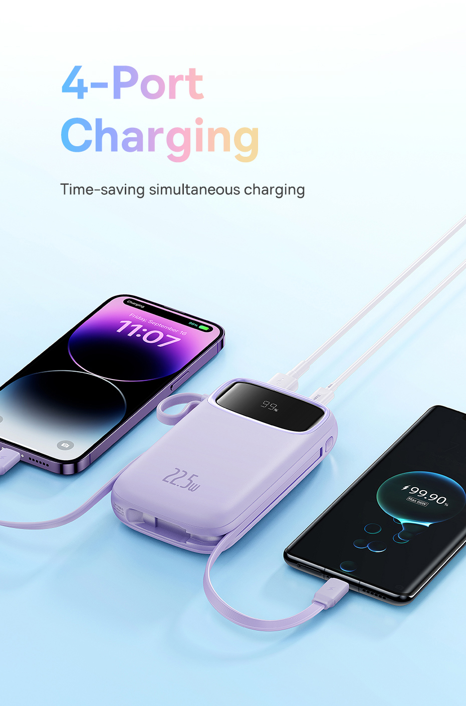 1️⃣Qpow2 22.5W: Tích Hợp Cáp Type-C + L, Kèm Theo Cáp USB Sang Type-C Trong Hộp.