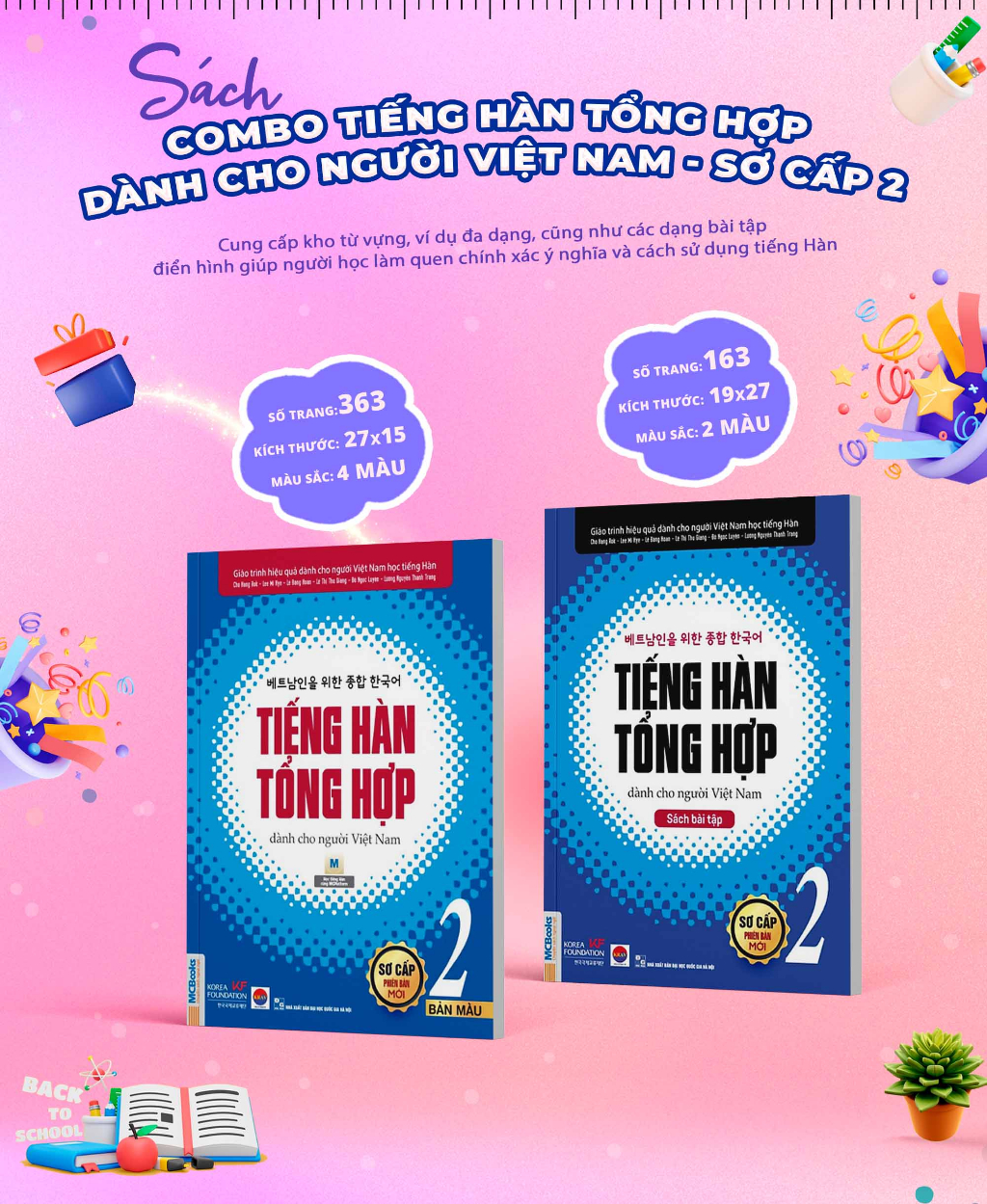 Combo sách “Tiếng Hàn tổng hợp dành cho người Việt Nam sơ cấp 2” gồm có 3 cuốn