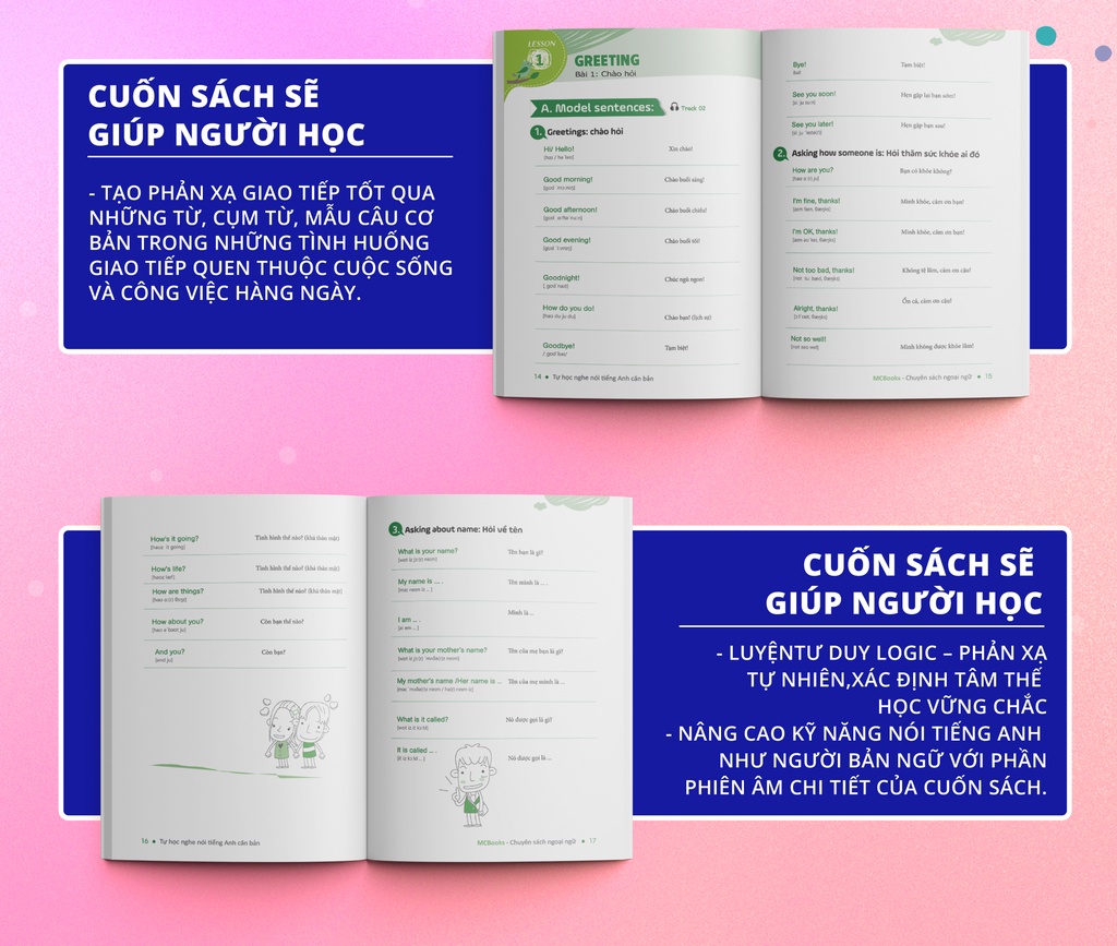 - Đây là bộ sách học tiếng Anh giao tiếp Phù hợp mọi trình độ từ mất gốc đến căn bản, đặc biệt phù hợp dành cho người người học tiếng Anh trình độ căn bản.