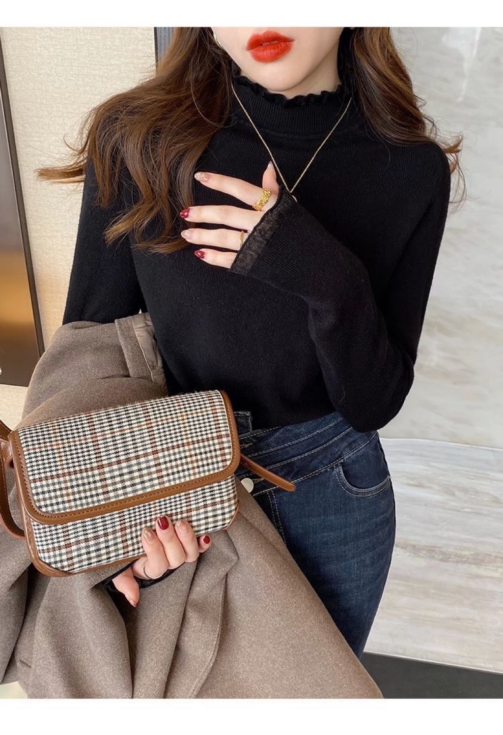 【 Sẵn Ảnh Thật+LOẠI 1 ĐẸP 】Áo Giữ nhiệt Cổ Cao Phối Bèo ,Áo Len Nữ Kiểu Ôm ,Len Mềm Ấm Áp QC