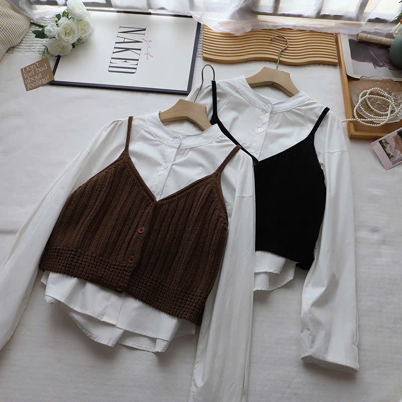Áo gile len 2 dây dáng croptop mặc bên ngoài áo sơ mi, phong cách trẻ trung năng động