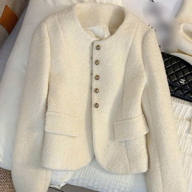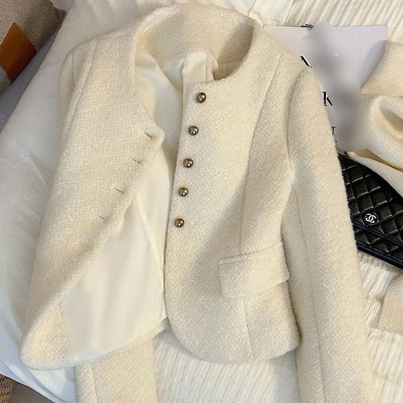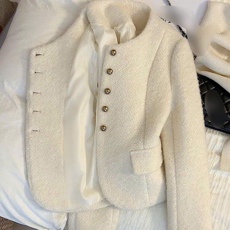 [SẴN] Áo khoác dạ dáng ngắn màu trắng kem đính cúc phong cách Hàn Quốc sang chảnh - 301