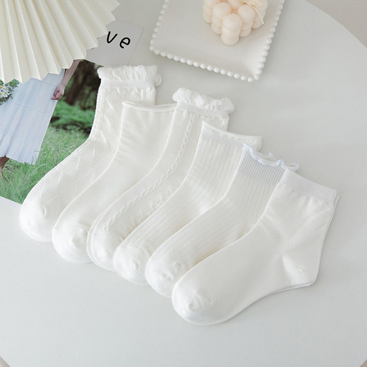 Set 5 đôi tất nữ vớ nữ cổ cao LYMIA nhiều mẫu màu trắng phong cách Hàn Quốc BT50