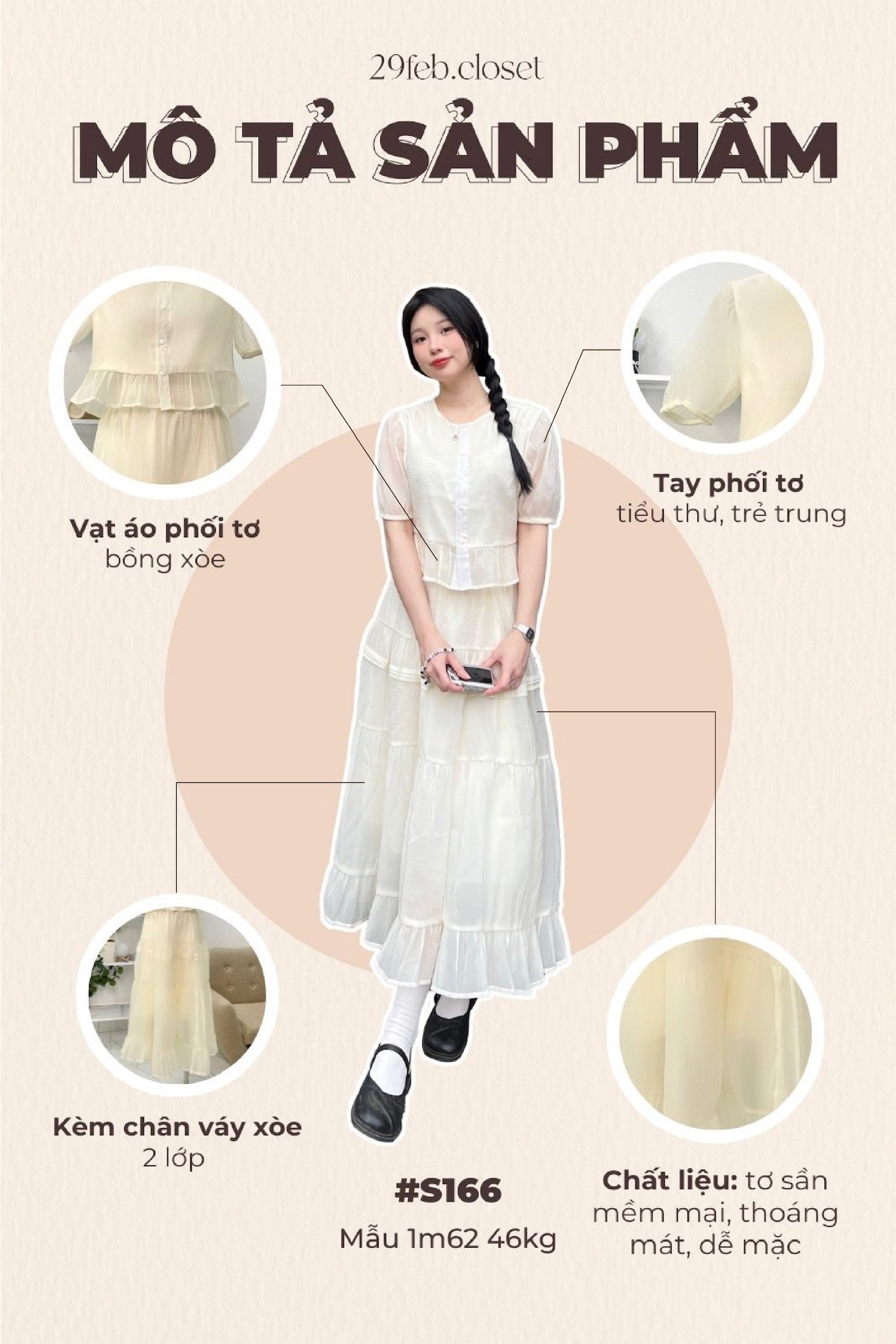 Set Áo Ngắn Tay Kèm Chân Váy Tầng Dáng Dài Xòe Nhẹ Nhàng Sang Chảnh Chất Tơ Sần - 29feb.closet - S166