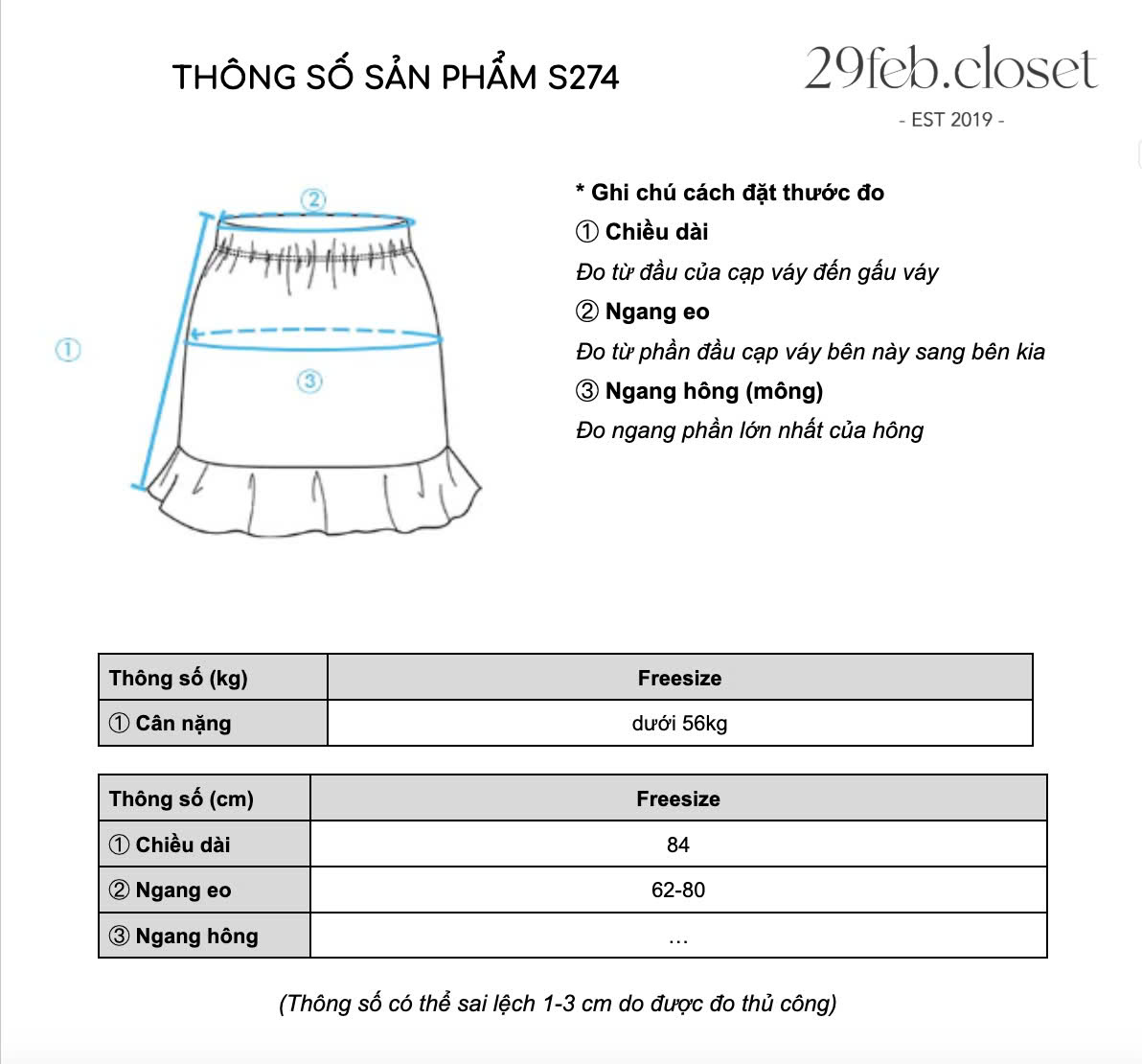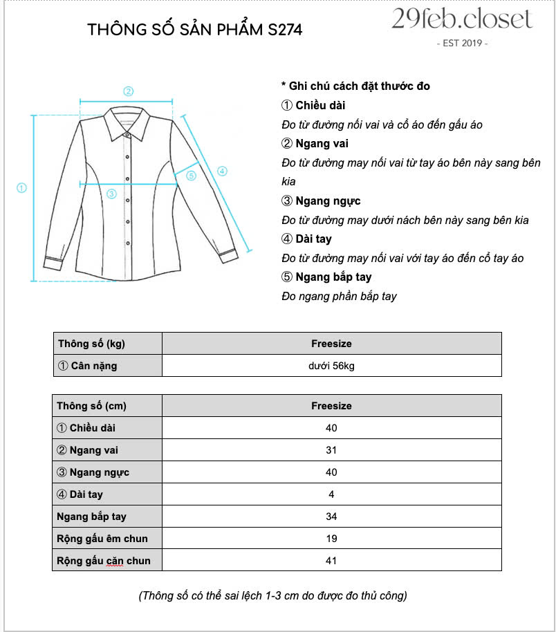 - Bảng Size mang tính chất tham khảo, có thể chênh lệch so với thực tế 1-3cm, bạn vui lòng chat cho Shop để được tư vấn kĩ hơn bạn nhé.
