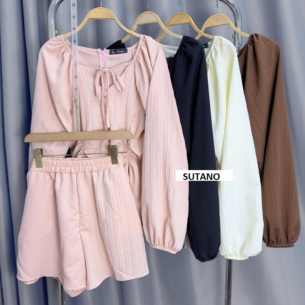 + Tên sản phẩm : Set bộ đồ nữ đũi gân áo rúm eo cúc bọc phối quần váy xòe tiểu thư set bộ tiểu thư sang chảnh B340 SUTANO