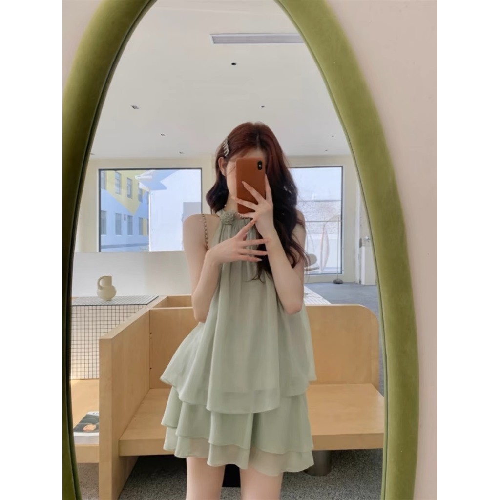 set bộ nữ áo voan tơ cổ yếm đính hoa kèm chân váy xòe tiểu thư nữ tính B378 SUTANO