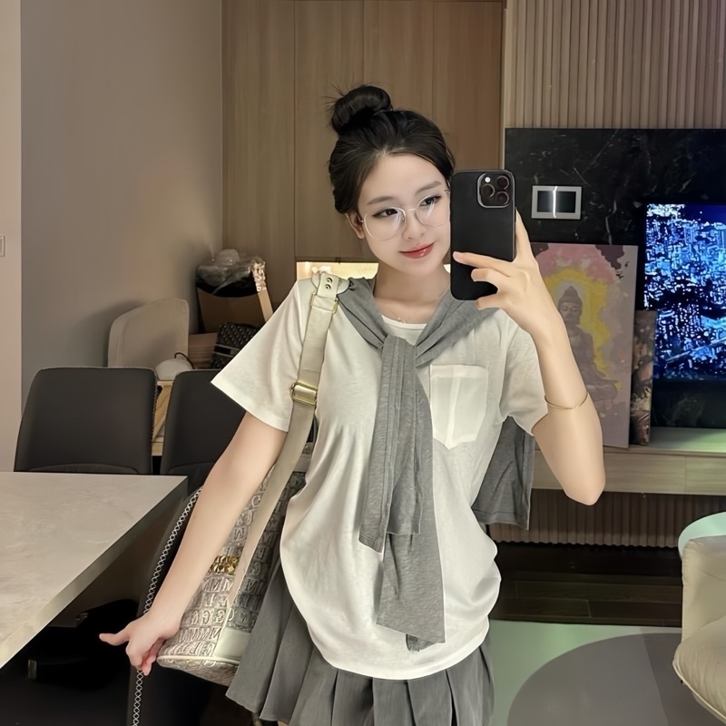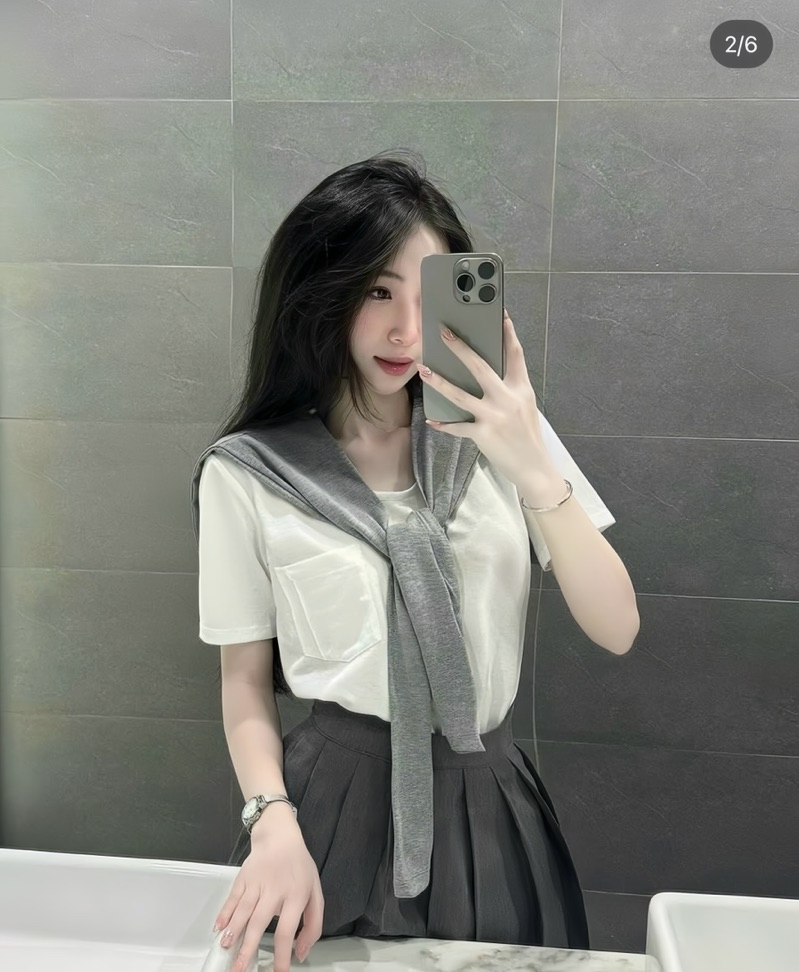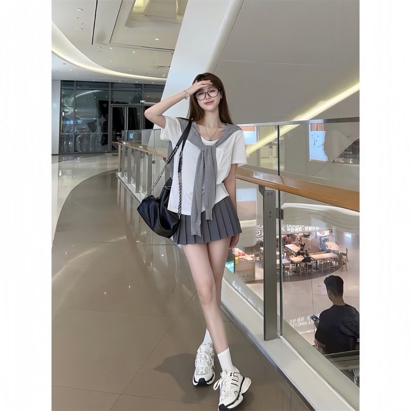 Sét Váy Thuỷ Thủ Nữ 3 Món Gồm Áo Thun Túi Nguc + Khăn Choàng + Chân Váy Xếp Ly