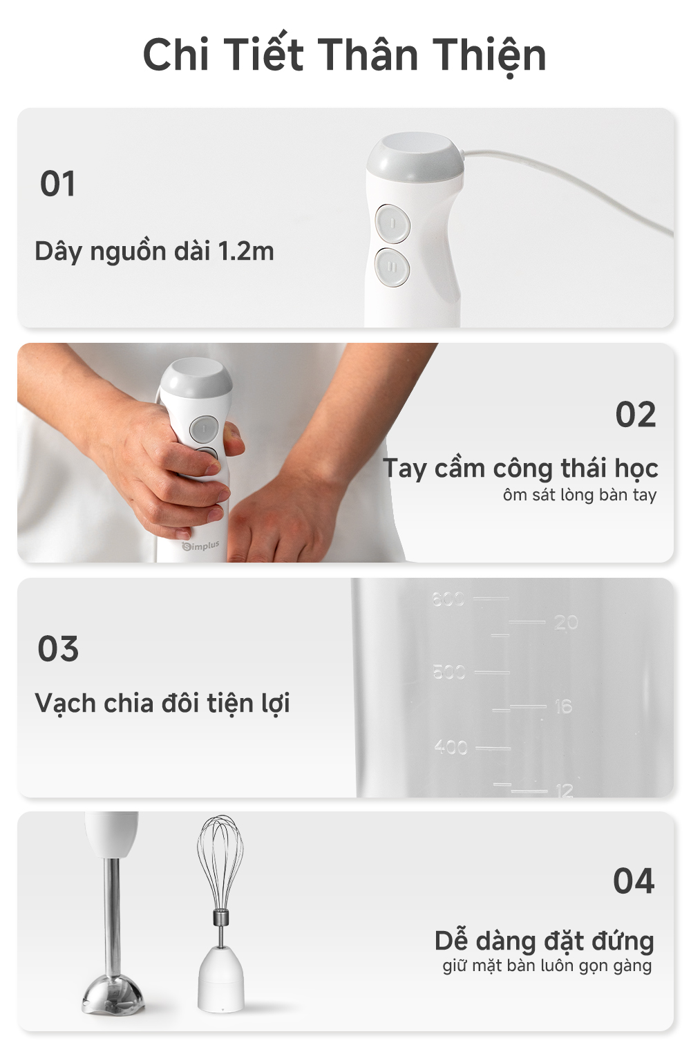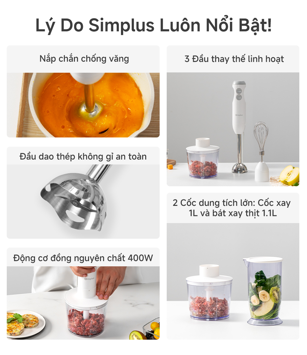 Simplus Máy Xay Cầm Tay Xay Thịt Đánh Trứng Xay Thực Phẩm Cho Bé Ép Trái Cây Làm Sốt Làm Bánh Xay Hạt JBBA003