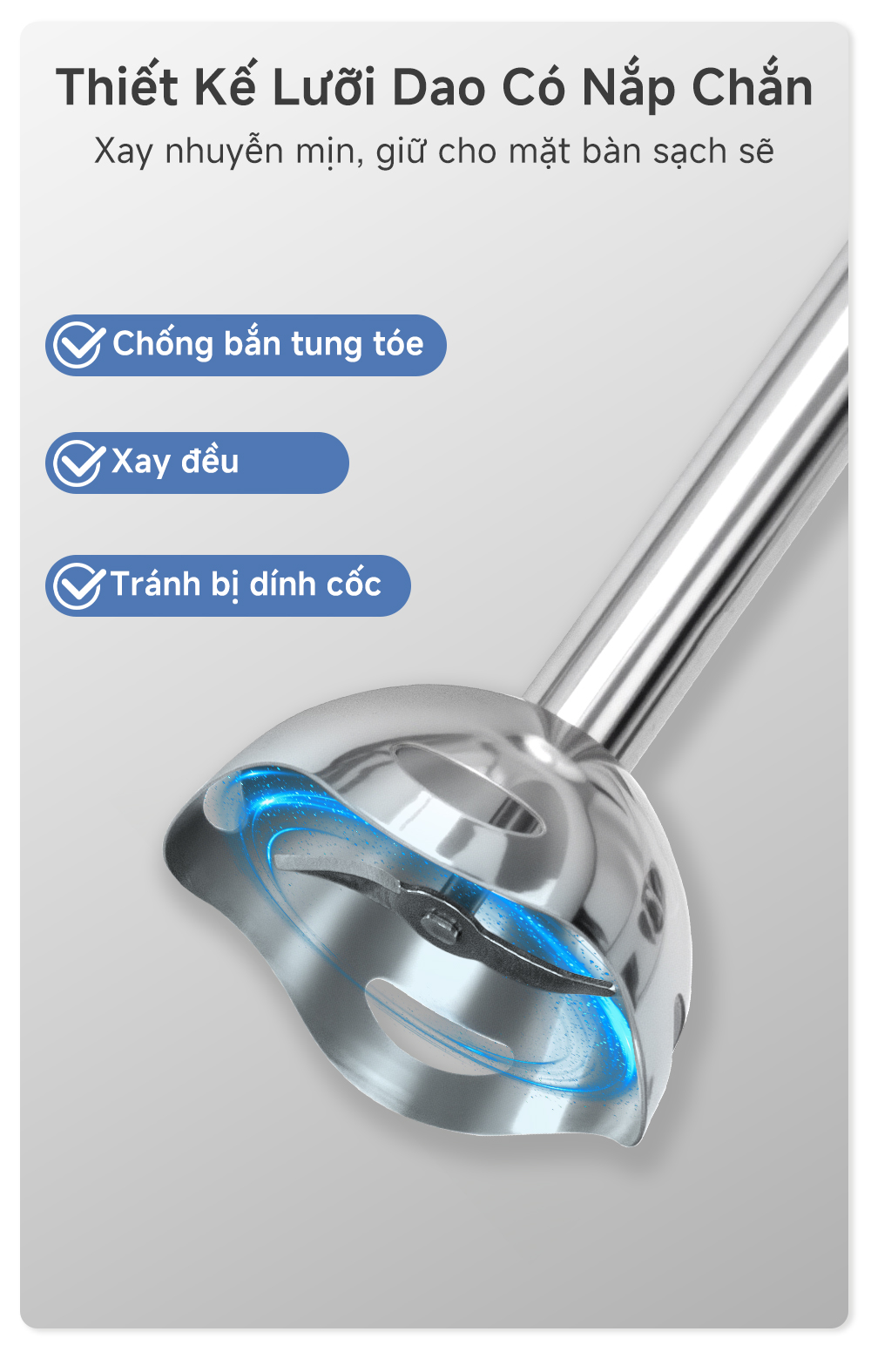 6. Vật Liệu An Toàn Thực Phẩm, Không Độc Hại: Lưỡi dao và đầu đánh trứng bằng thép không gỉ, chất liệu an toàn cho thực phẩm, an tâm làm thức ăn dặm cho bé
