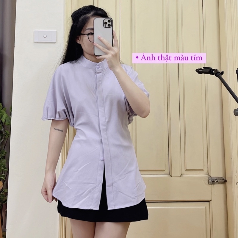 Sơ mi cộc tay cổ tàu chất thô đũi nhăn - M36