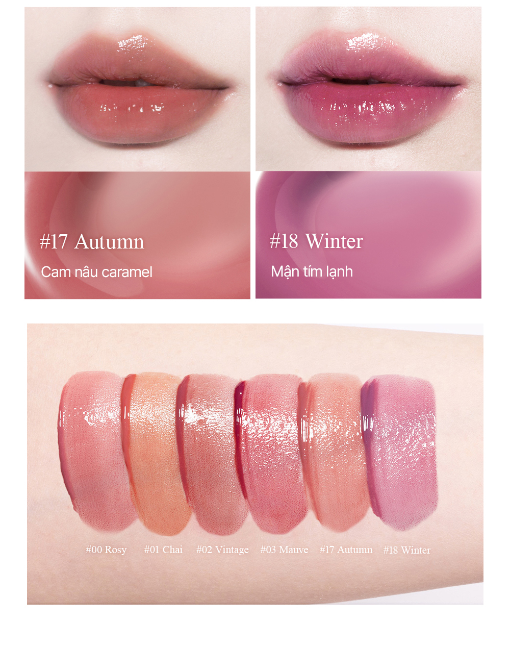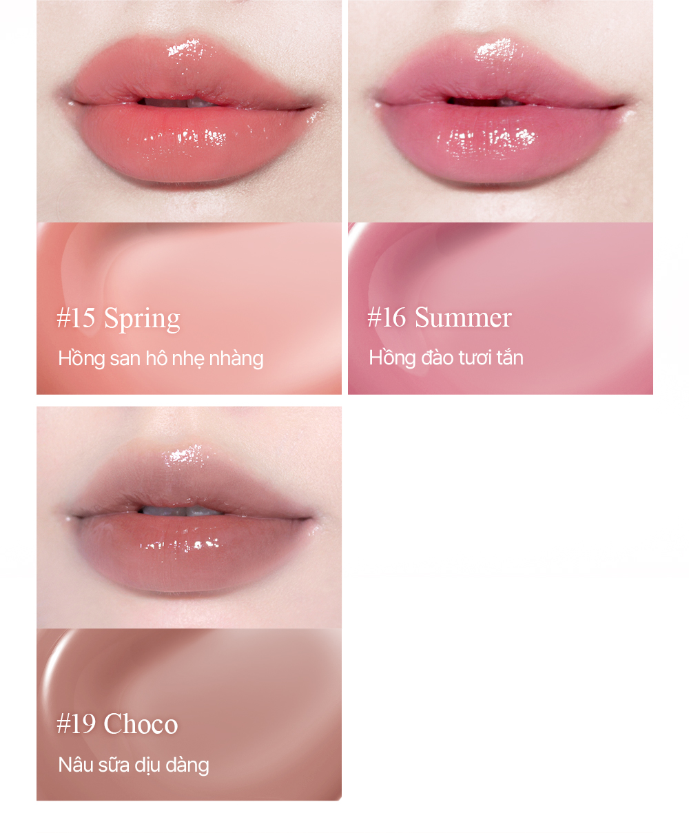 BBIA Glow Tint là dòng son tint bóng với kết cấu mỏng nhẹ, cho lớp màu trong trẻo tự nhiên mà vẫn bám lâu và không gây bết dính. Hiệu ứng bóng như nước giúp môi căng mọng tức thì, dưỡng ẩm nhẹ nhàng và tạo cảm giác mềm mại cả ngày dài. Công thức cải tiến giúp son bám đều và duy trì màu sắc ngay cả sau khi ăn uống.