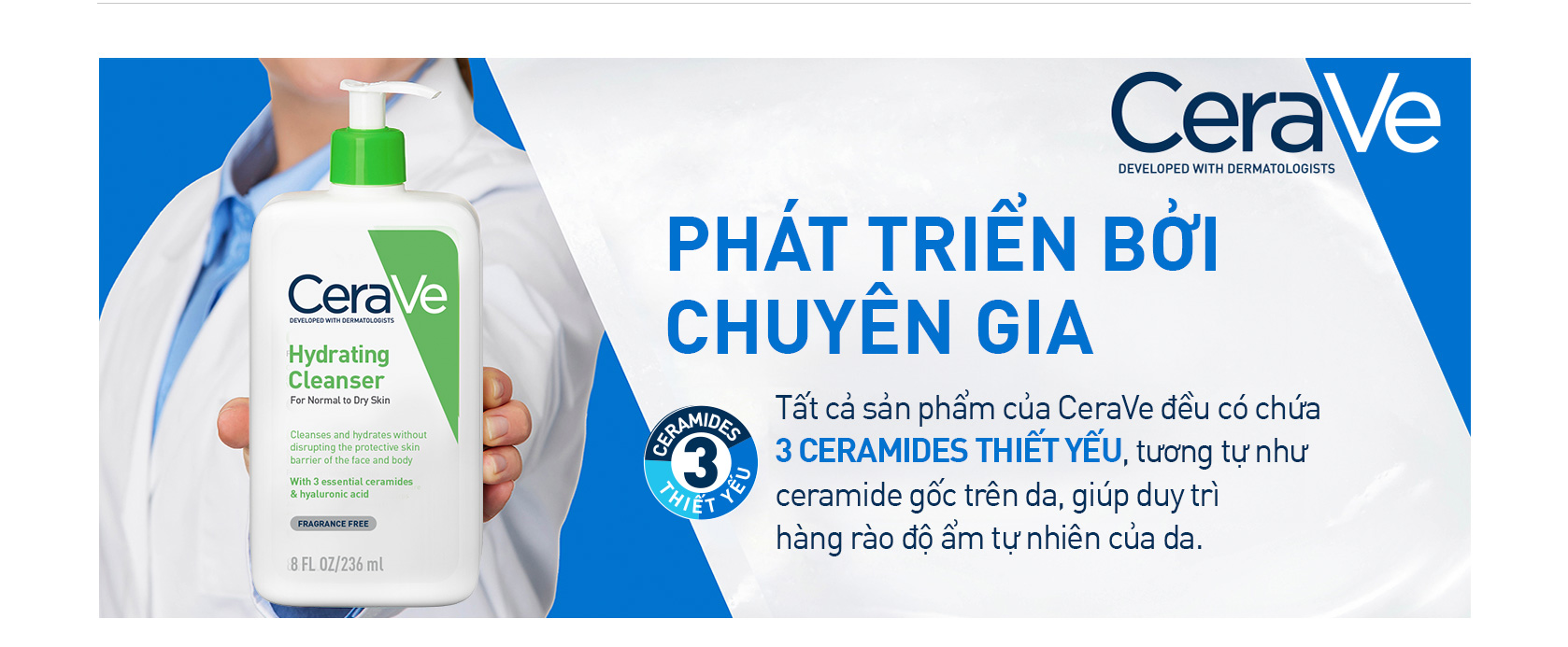CeraVe là nhãn hiệu dưỡng ẩm #1 tại Mỹ được các chuyên gia chăm sóc da khuyên dùng. Vào năm 2005, một hội đồng các bác sĩ, chuyên gia chăm sóc da đã phát triển một công nghệ mới có chứa Ceramides 1, 3 và 6-II (giống hệt với cấu trúc Ceramides được chứng minh thiếu hụt trong một số bệnh về da), axit béo và các chất béo khác được tăng cường với hệ thống phân phối đột phá được gọi là MultiVesicular Emulsion Technology - MVE. Công thức của 3 loại CERAmides thiết yếu và công nghệ mVE là sự ra đời của CeraVe. CeraVe là một trong số ít những nhãn hàng phát triển sản phẩm bởi các bác sĩ nhằm cung cấp các giải pháp trị liệu cho làn da. Với nỗ lực không ngừng nghỉ của mình, nhãn hàng vẫn sẽ tiếp tục đồng hành và phát triển cùng các chuyên gia chăm sóc da để góp phần biến đổi diện mạo ngành chăm sóc da trong nhiều năm tới.