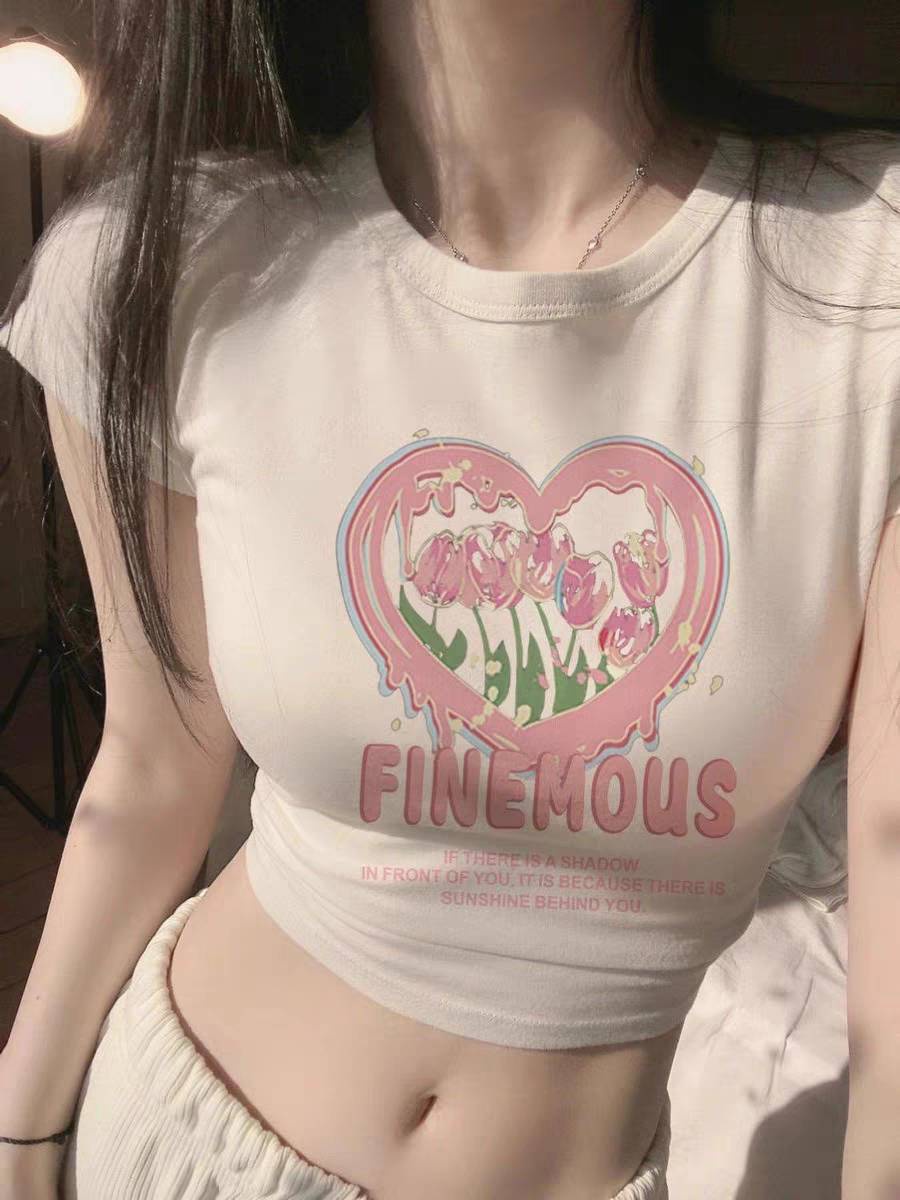 SUOMENG Áo croptop áo thun baby tee nữ âu mỹ chất cạp cao Cổ tay ngắn in họa tiết Vintage 2023NEW JL1311