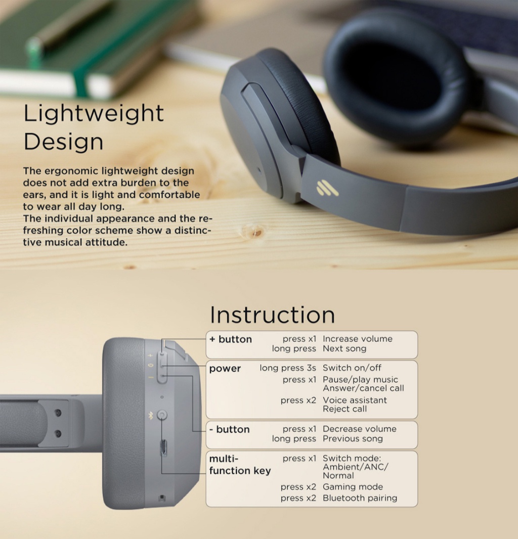 Tai nghe Bluetooth Edifier W820NB / W820NB Plus - Bluetooth, chống ồn chủ động ANC, xuyên âm - Hàng chính hãng