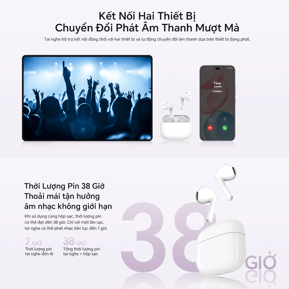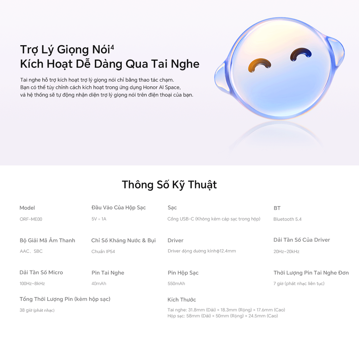 Tai Nghe Bluetooth Honor Choice Earbuds X7e Active | Thời lượng pin lên đến 38 giờ | Kháng bụi và nước IP54