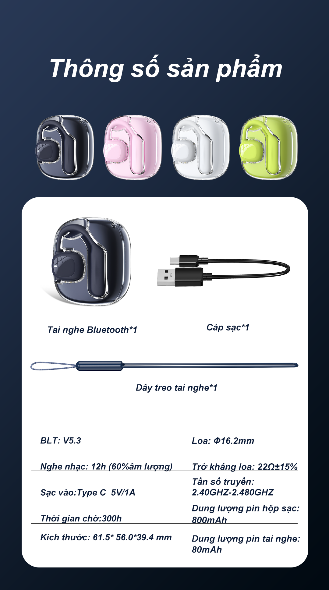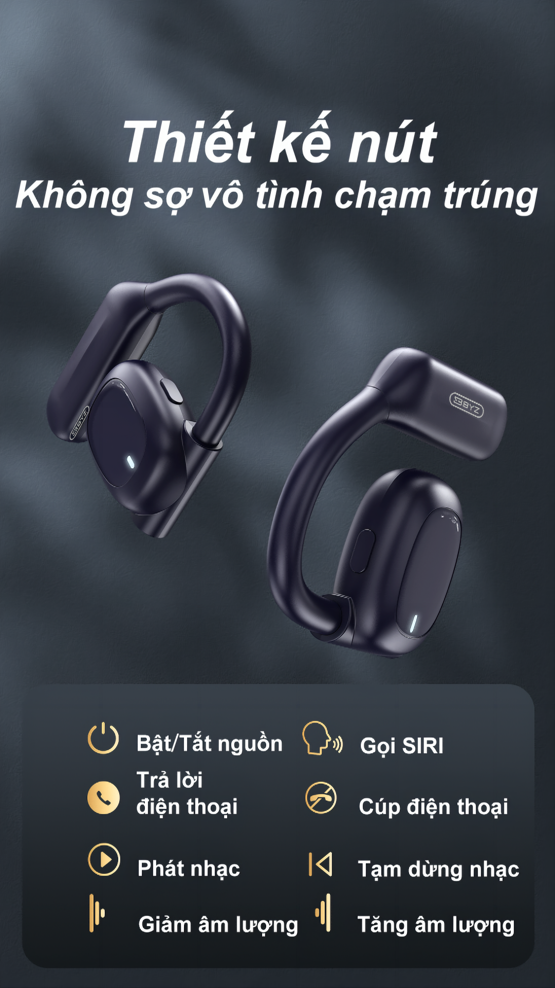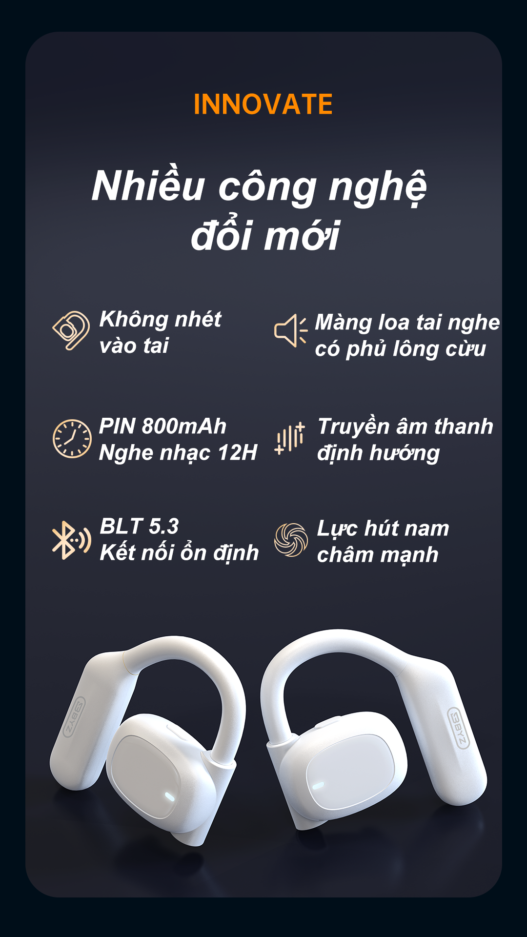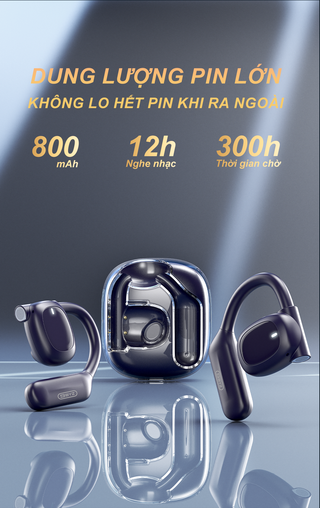 Tai nghe bluetooth không dây không nhét tai BYZ S600 có micro chống Ồn Pin lâu 800mAh