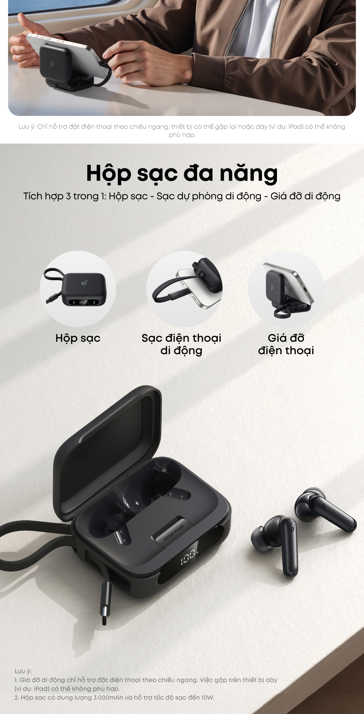 ✏️ Hộp sạc đa năng, tích hợp 3 trong 1: Hộp sạc - Sạc dự phòng di động - Giá đỡ điện thoại.
