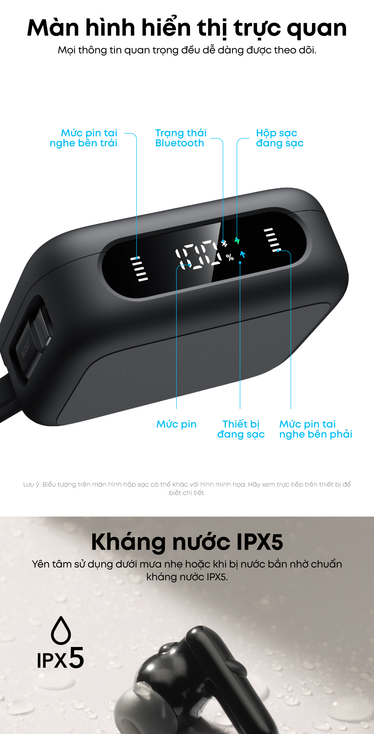 - Chỉ số kháng nước tai nghe: IPX5