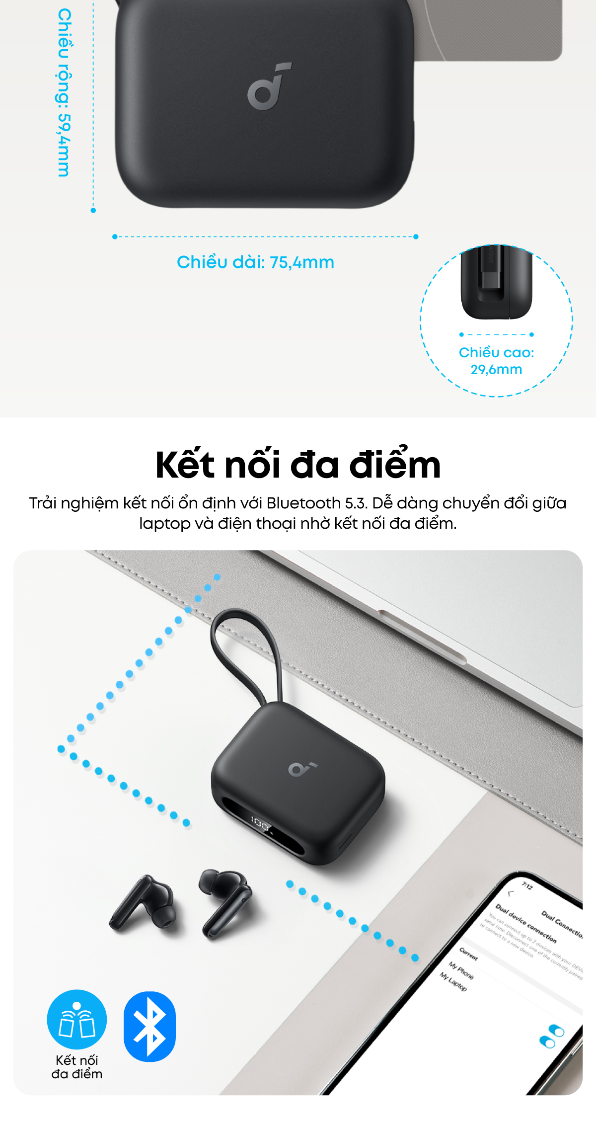 - Phương thức điều khiển: Chạm cảm ứng / app soundcore
