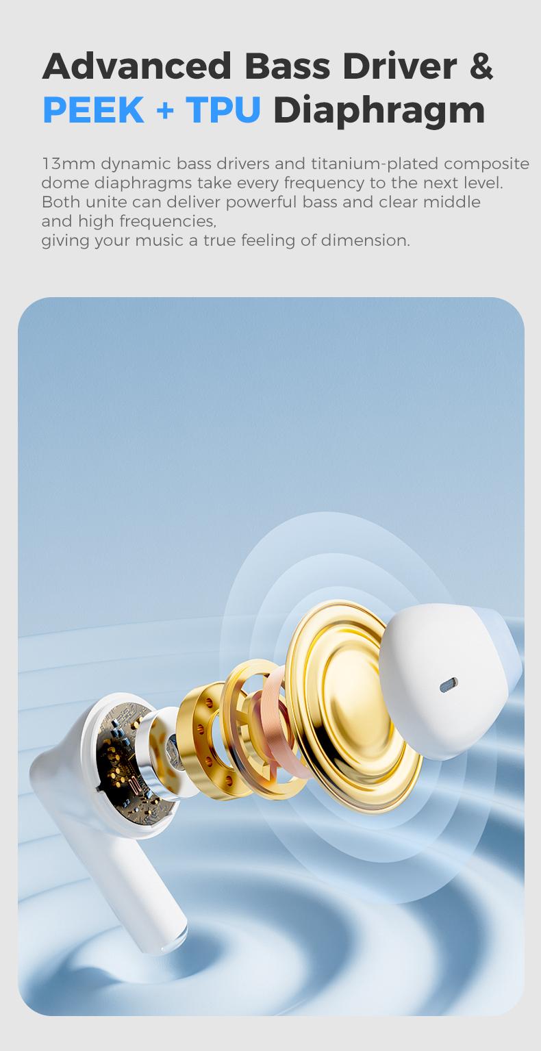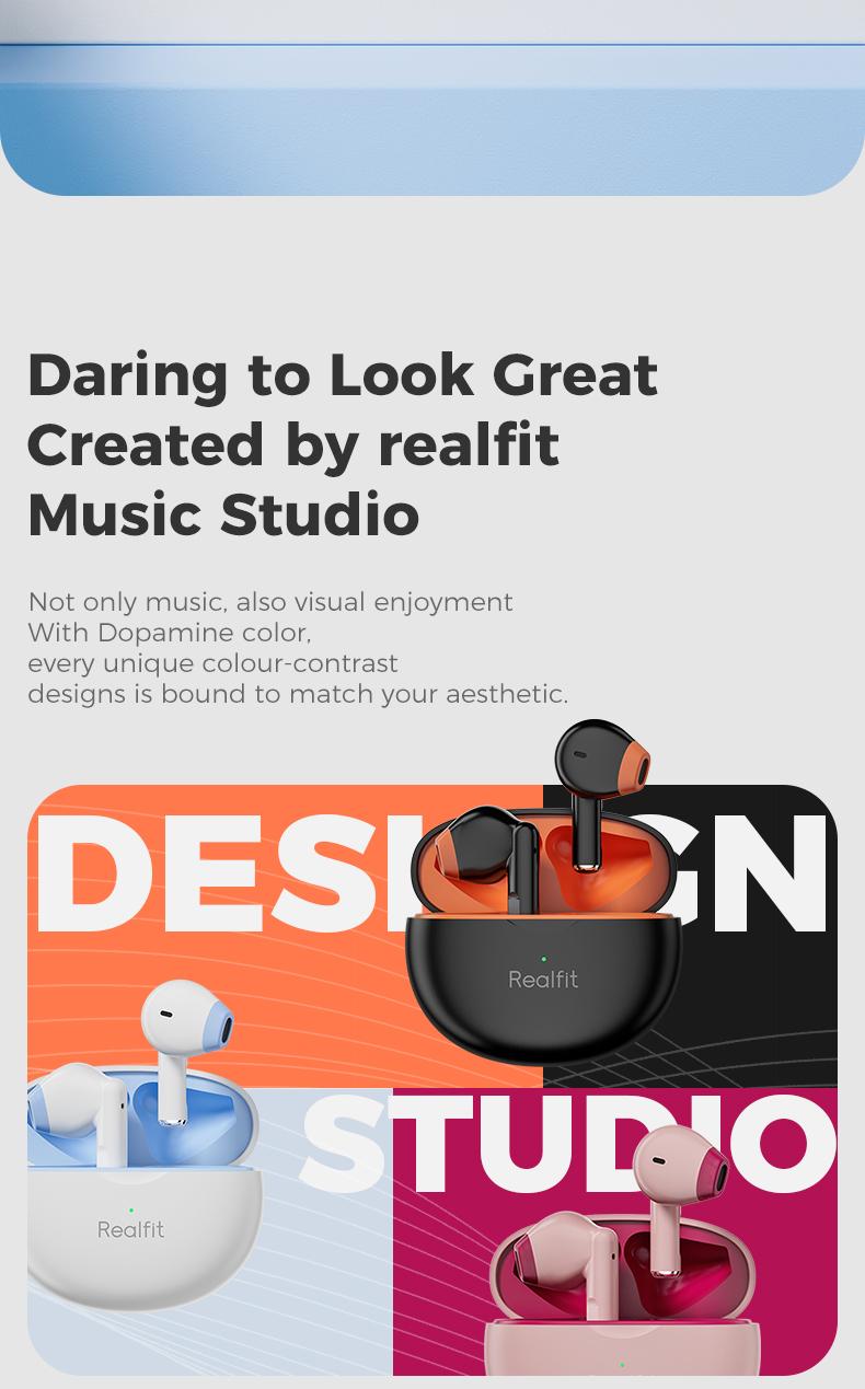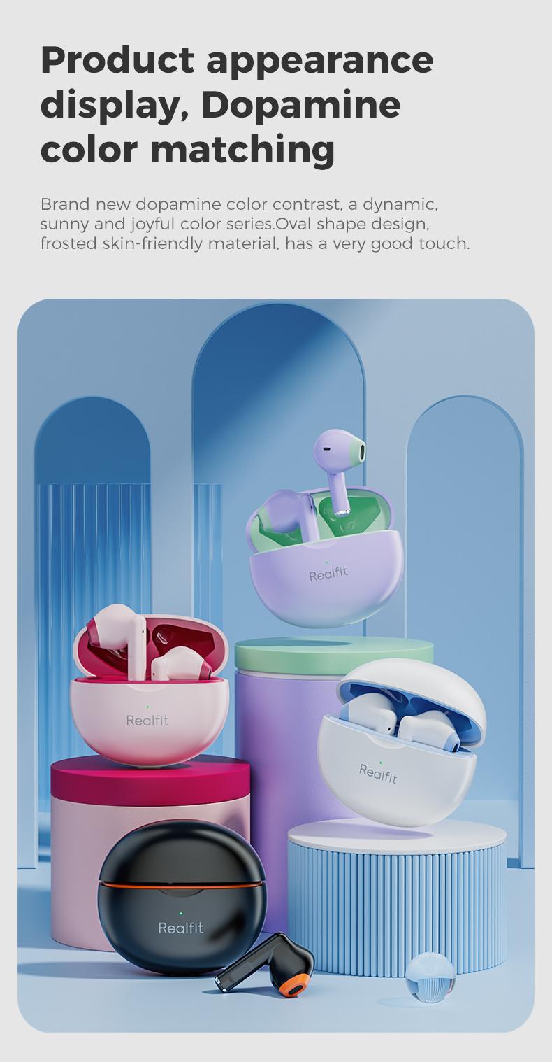 Tai nghe Bluetooth Realfit F2 TWS, Chất lượng HIFI, Tai nghe không dây thực sự, có Mic, BT5.3, Âm trầm tuyệt vời