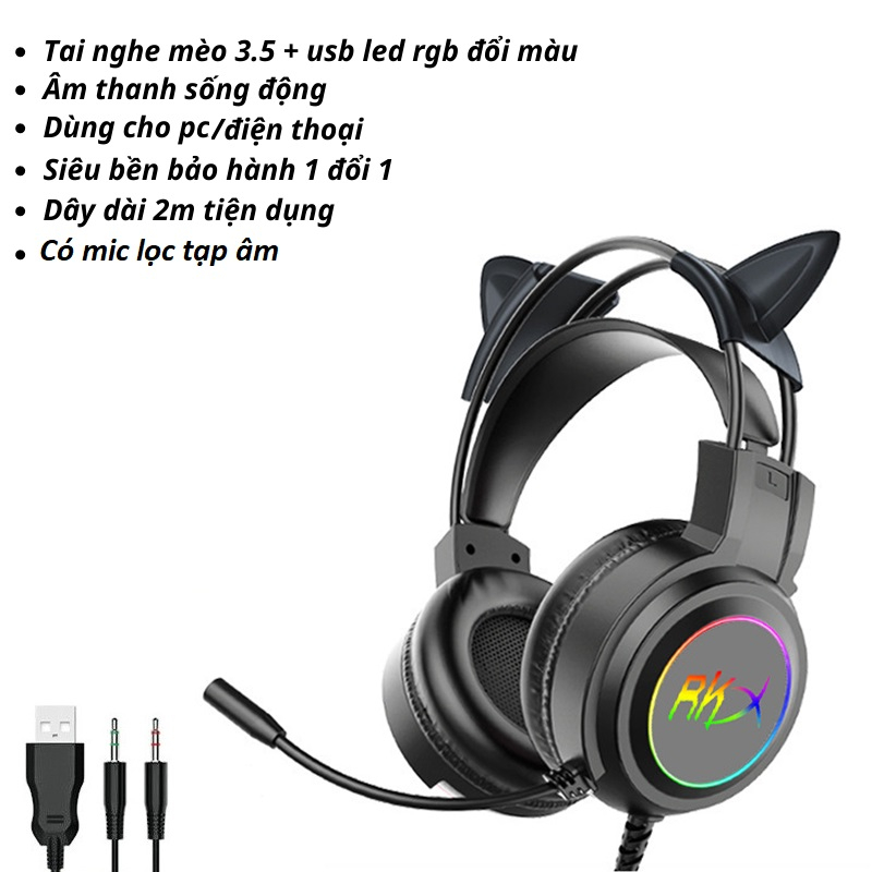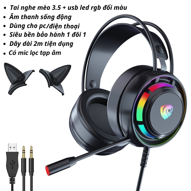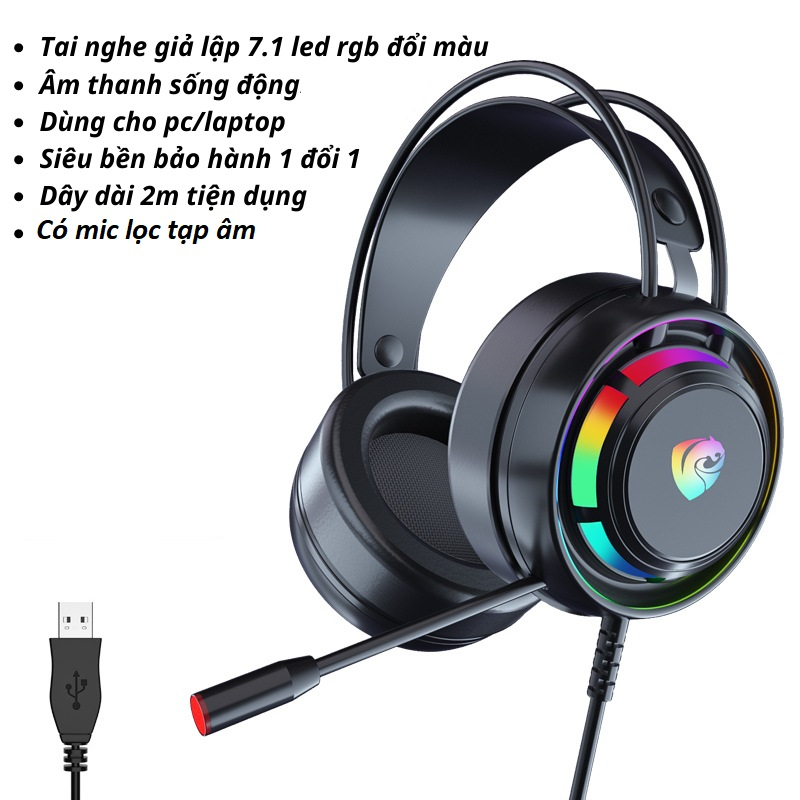 Tai nghe chụp tai gaming giả lập 7.1 có mic 100 mẫu BH 2 năm 1 đổi 1 Led Rgb cho máy tính laptop ĐT Ipad