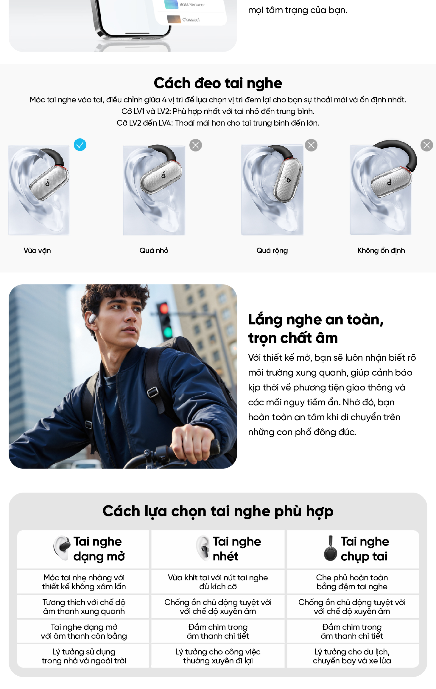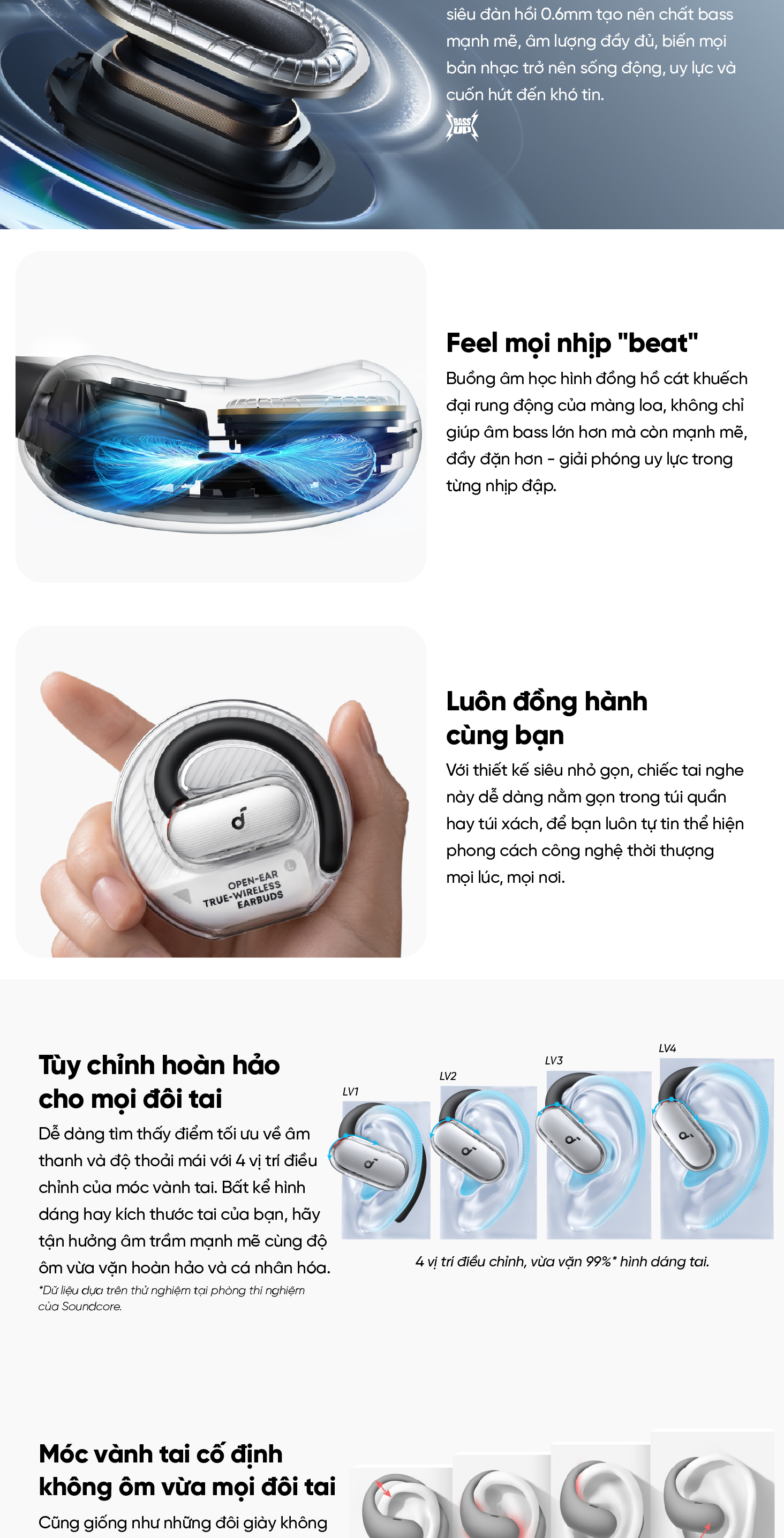 - Móc tai 4 mức điều chỉnh, linh hoạt phù hợp với mọi loại tai
