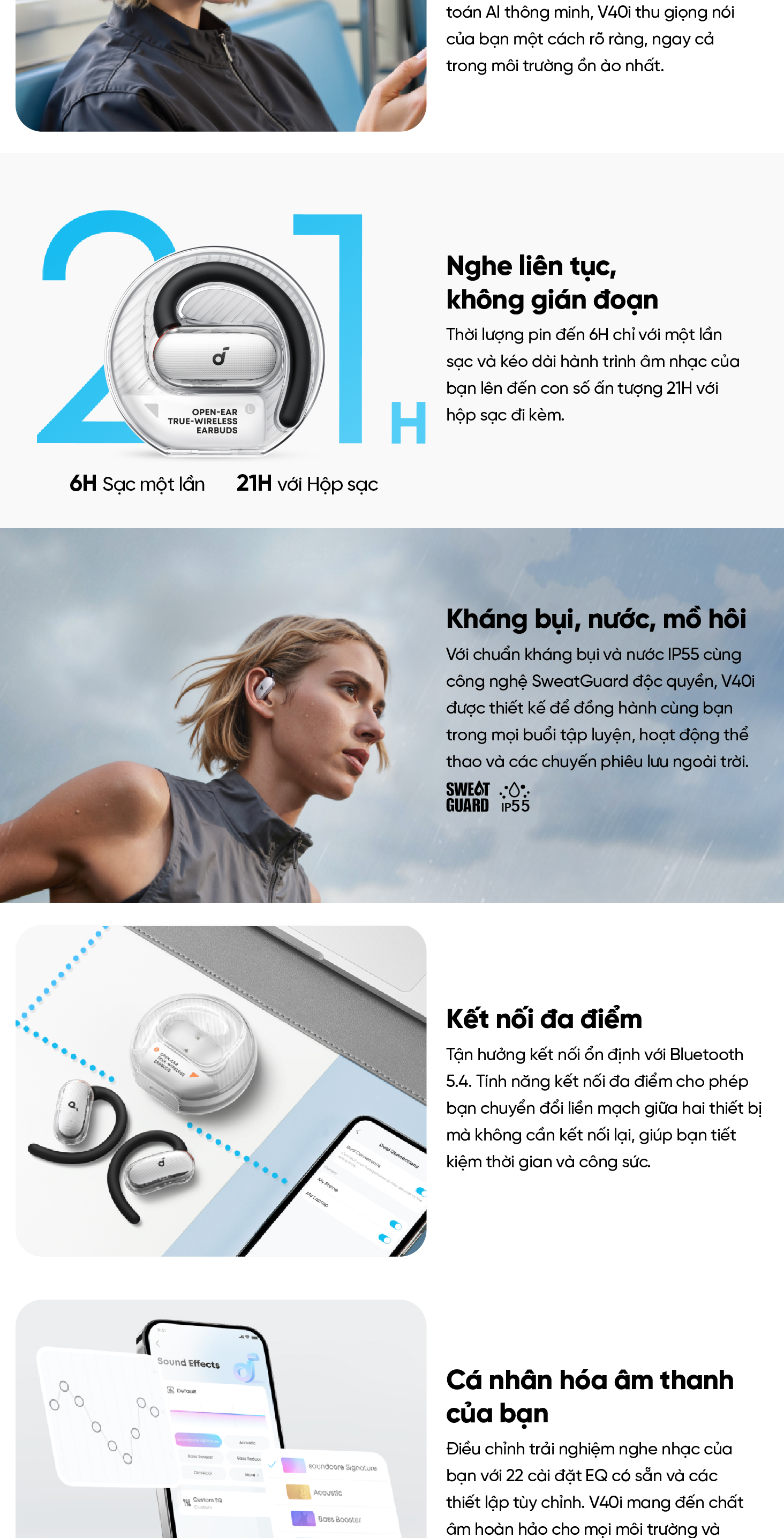 - Nhờ hệ thống 4 micrô và thuật toán AI thông minh, V40i thu giọng nói của bạn một cách rõ ràng, ngay cả trong môi trường ồn ào nhất.