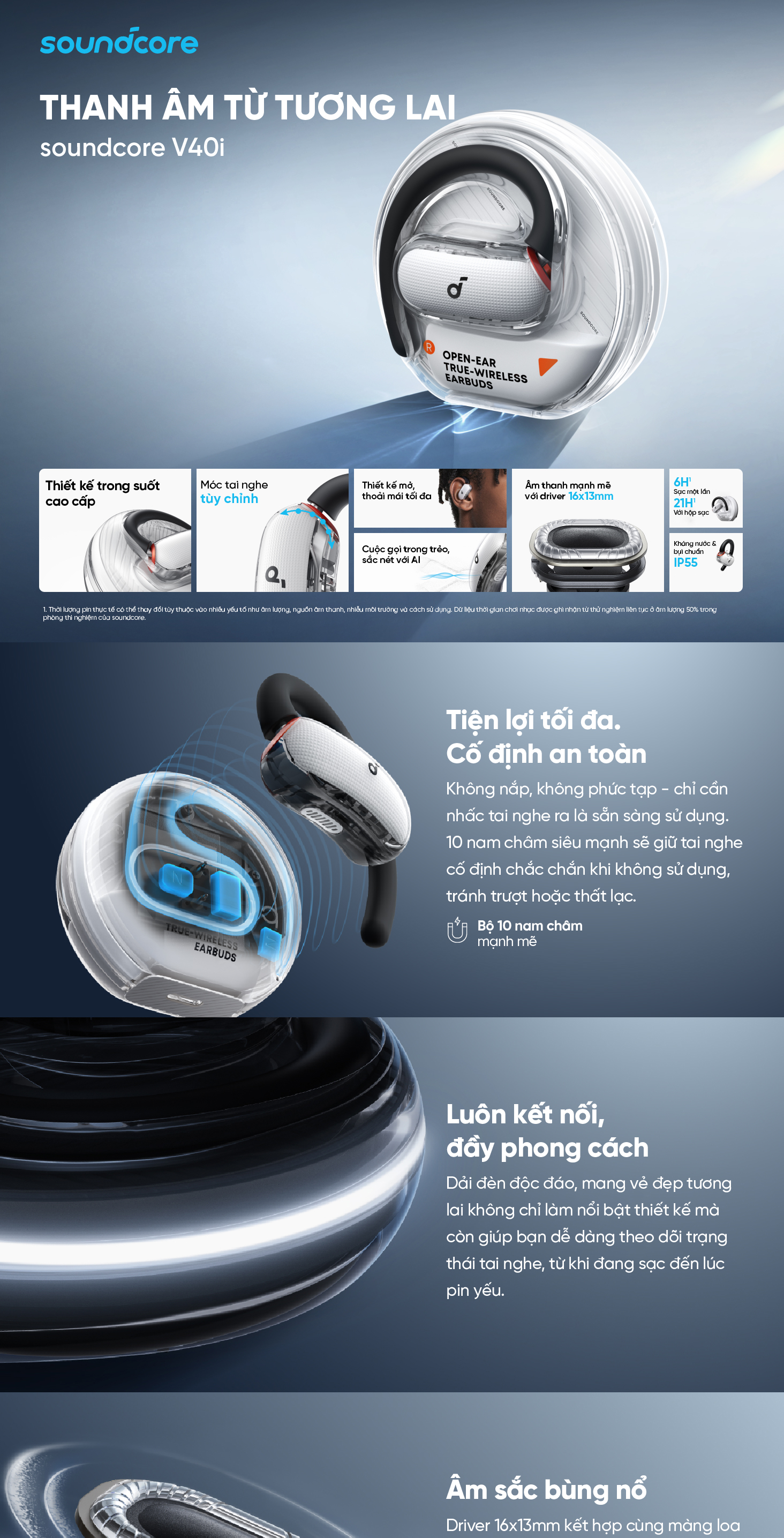 Tai nghe đeo vành tai bluetooth Open-Ear Soundcore V40i | Màng loa lớn | Chống nước và bụi IP55 | Tích hợp phiên dịch