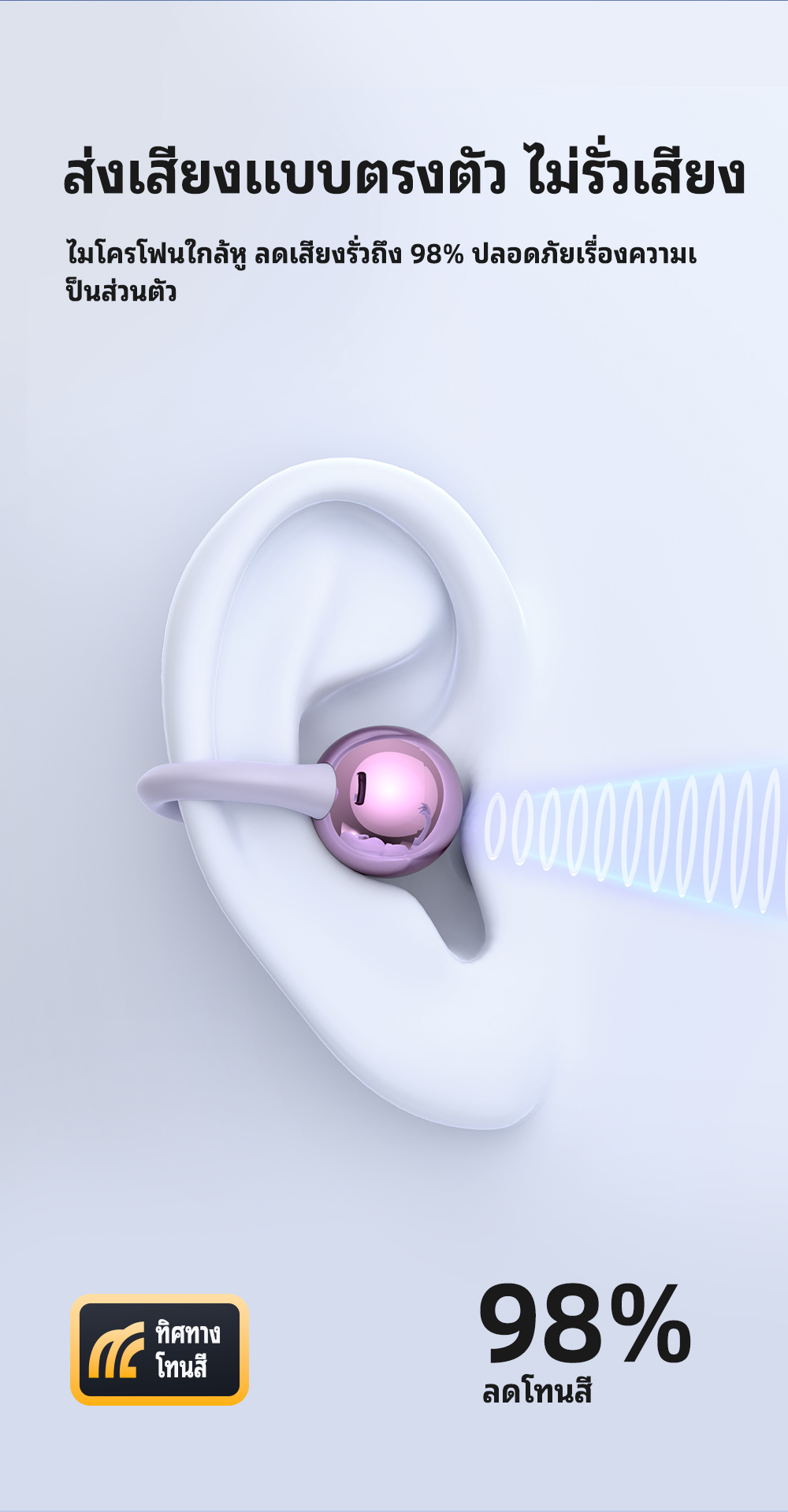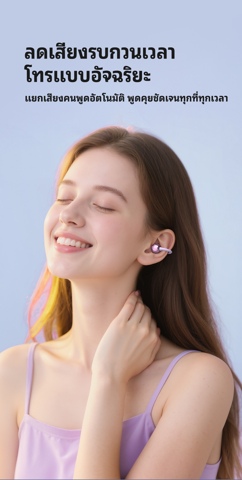 Thoải mái khi đeo mà không bị ngoáy tai. Tai nghe nhẹ như không khí, với các đầu tai nhỏ và có thể nghiêng để tối ưu hóa trải nghiệm âm thanh.