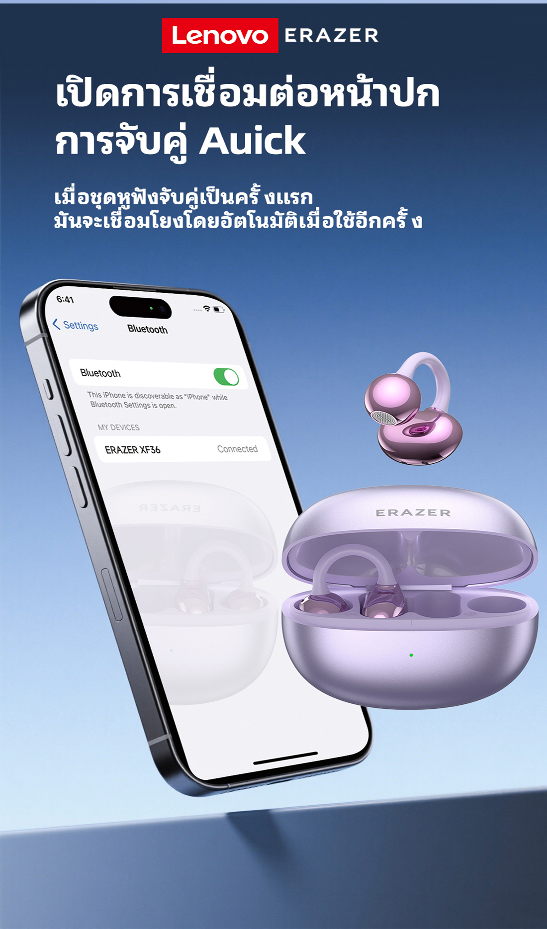 Lenovo ERAZER XF36 Tai Nghe Phiên Dịch AI Tai nghe Bluetooth 6.0 Âm thanh vòm ACS 360° Phong cách Tai nghe kẹp tai Chống ồn thông minh Tai nghe thể thao Tai nghe không dây