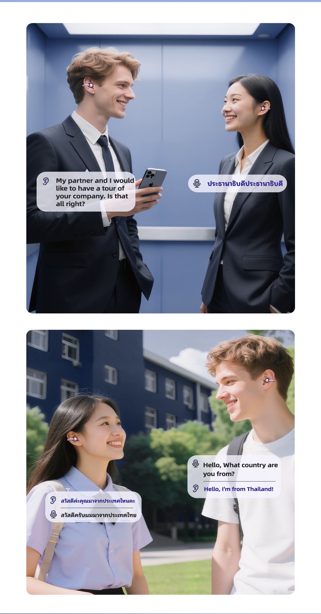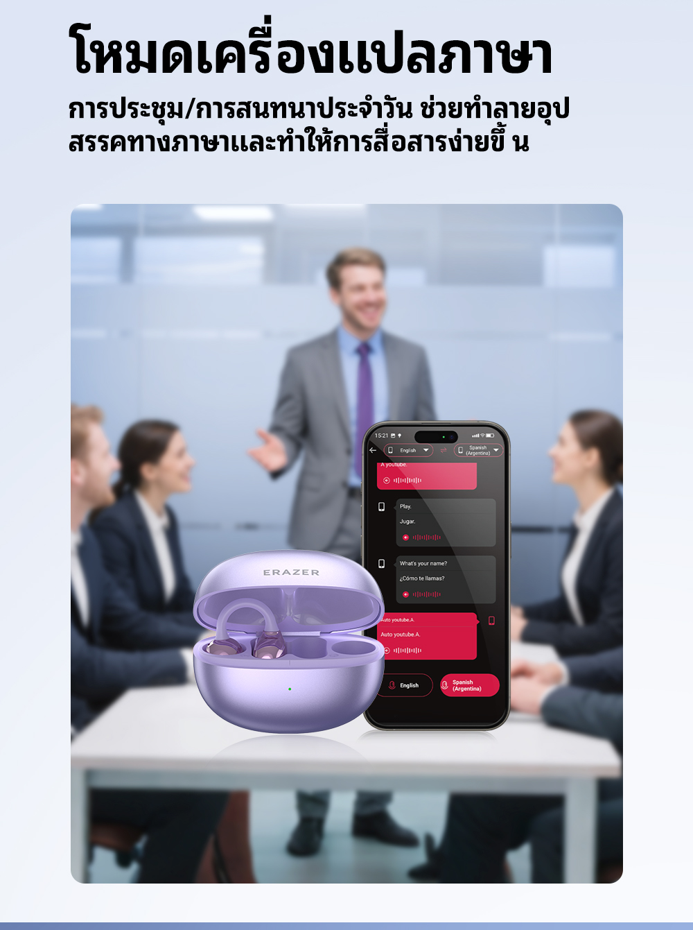 Cuộc họp / cuộc trò chuyện hàng ngày Dễ dàng phá vỡ rào cản ngôn ngữ và đơn giản hóa giao tiếp Ghi lại cuộc họp / cuộc trò chuyện, thảo luận về ngôn ngữ và thúc đẩy giao tiếp