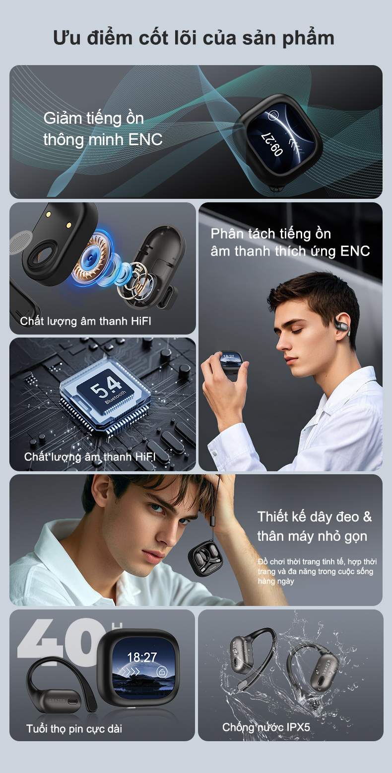 Công nghệ Bluetooth 5.4 mới: tốc độ cao và ổn định Tận hưởng độ trễ rất thấp Khoảng cách truyền: Khoảng 10 mét (không có chướng ngại vật)