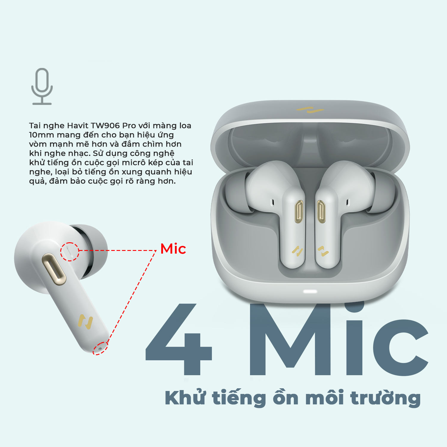 Tai Nghe Không Dây Havit TW906 Pro ANC ENC Low Latency Bluetooth 5.4