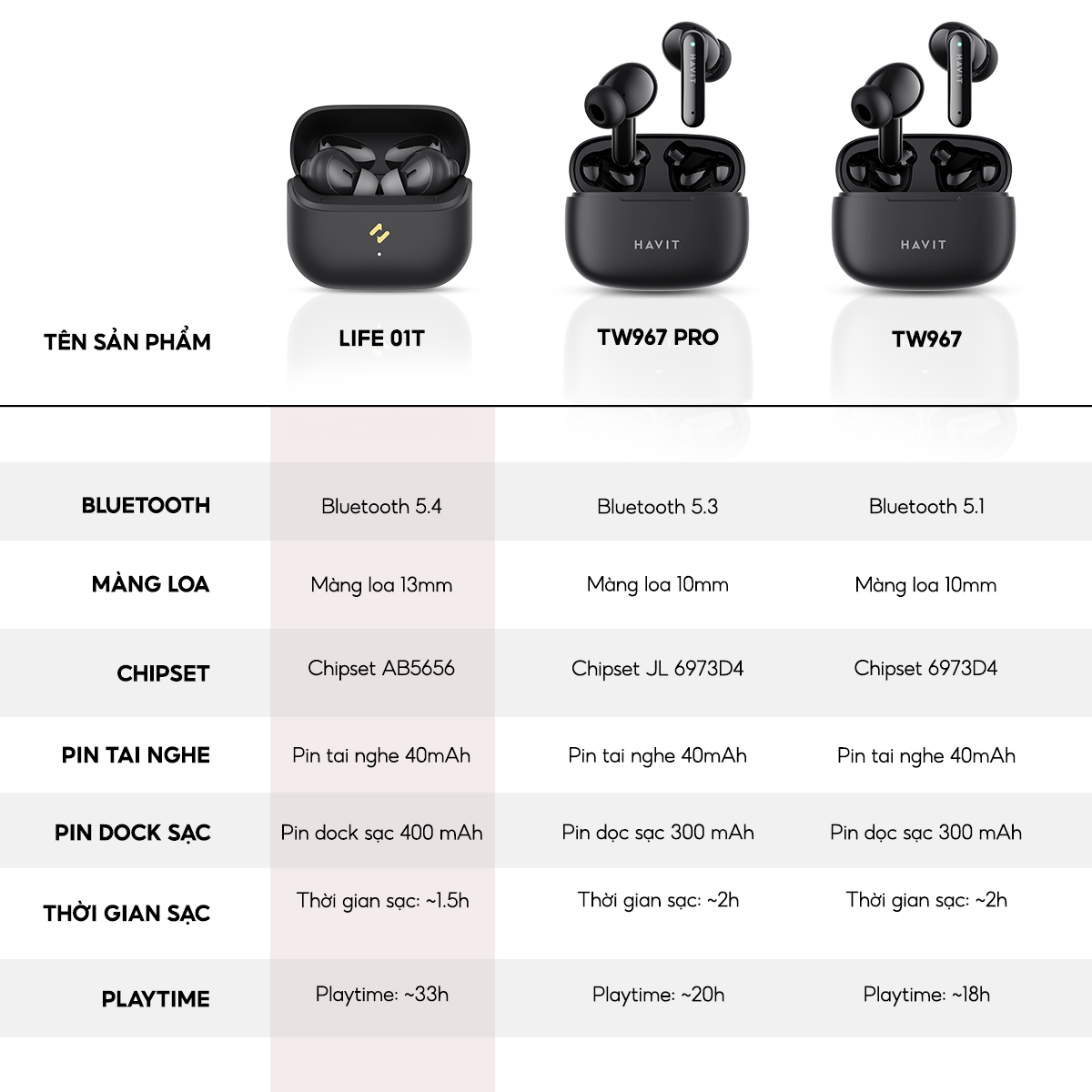 - Bluetooth 5.3 Tăng tốc độ kết nối và ổn định hơn cho tai nghe