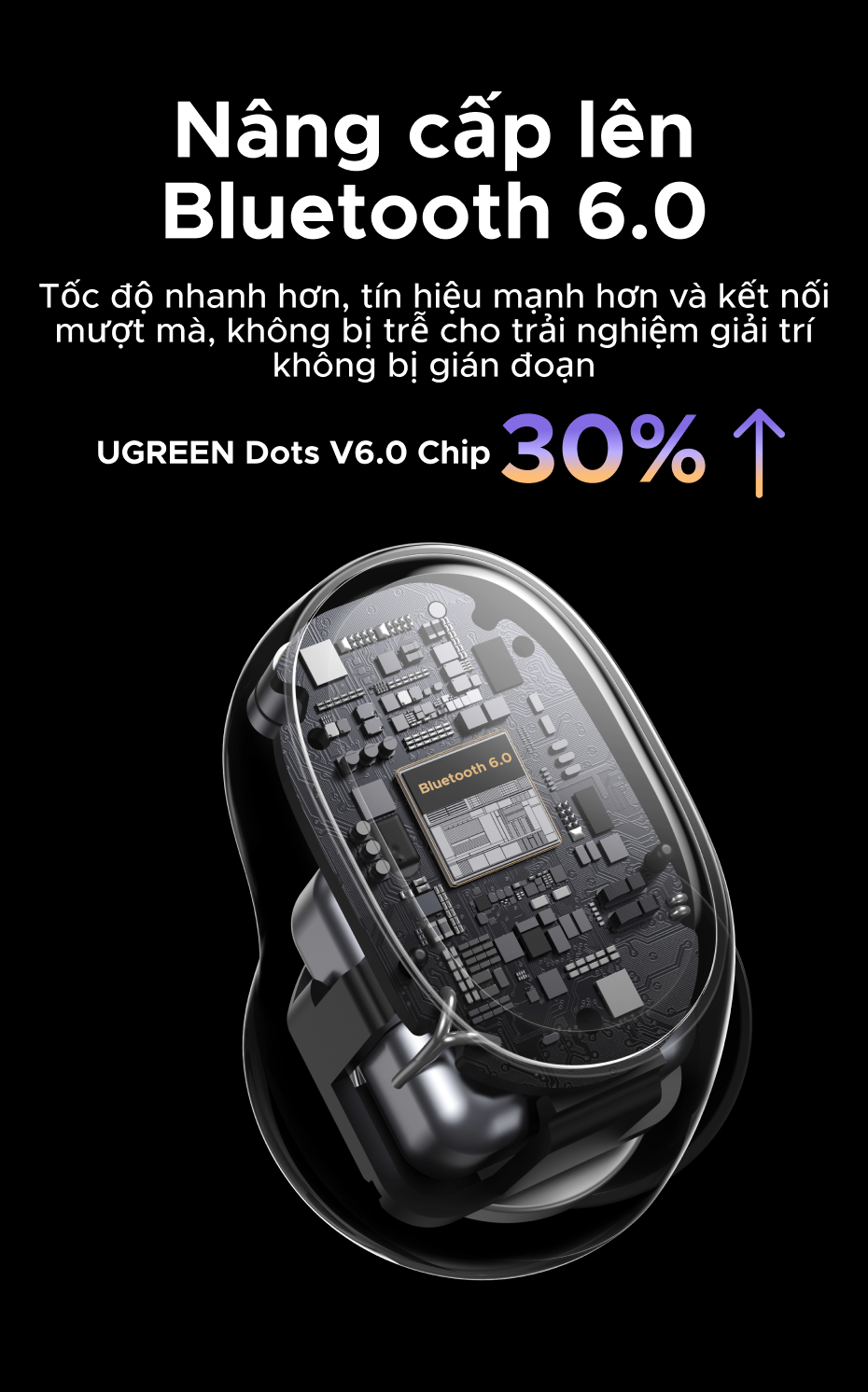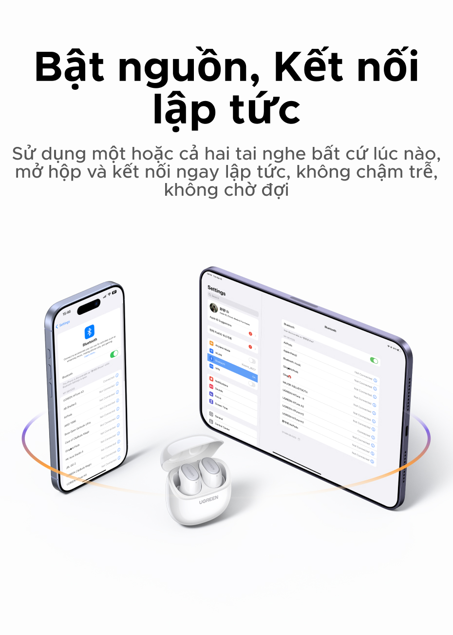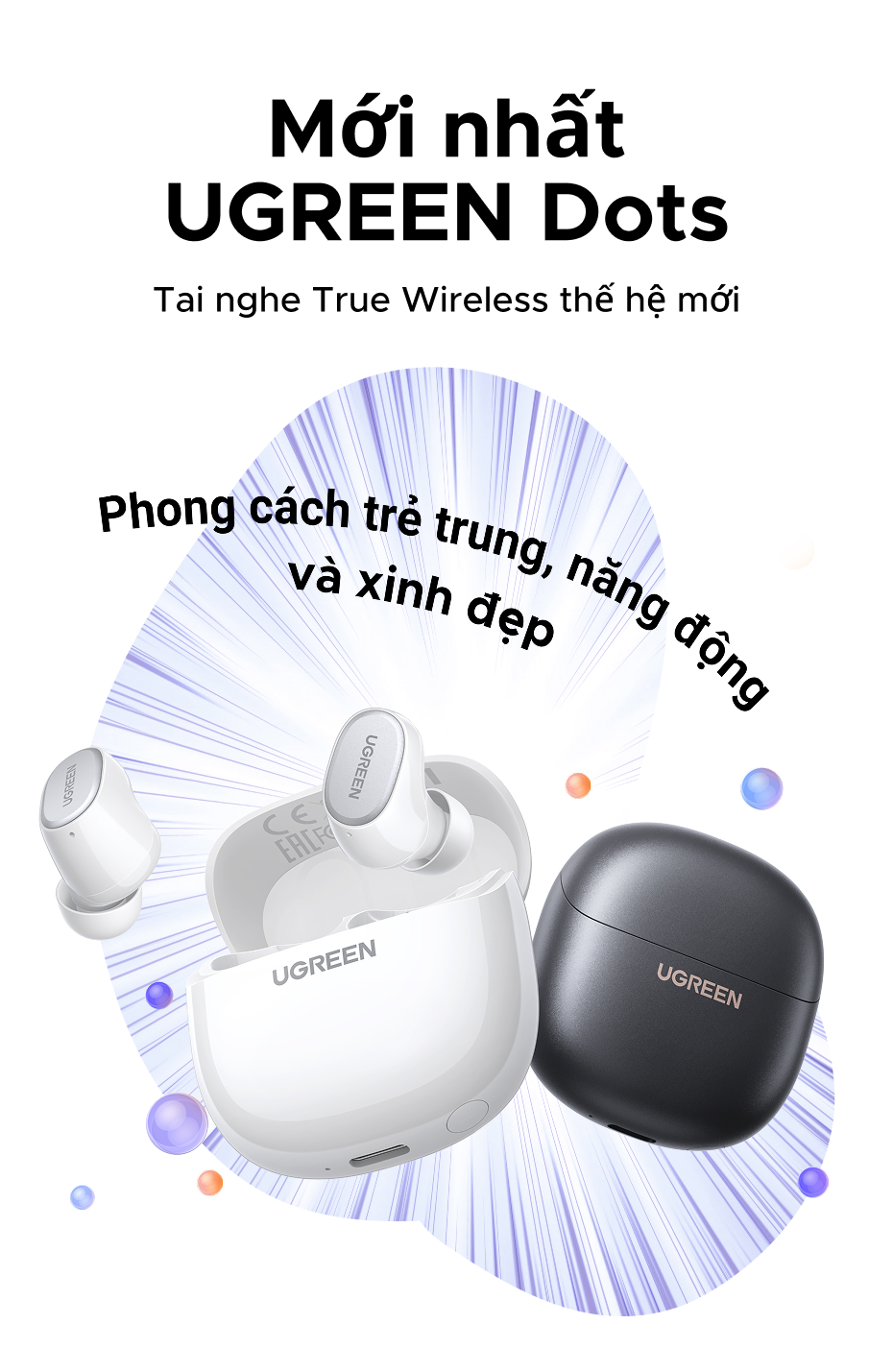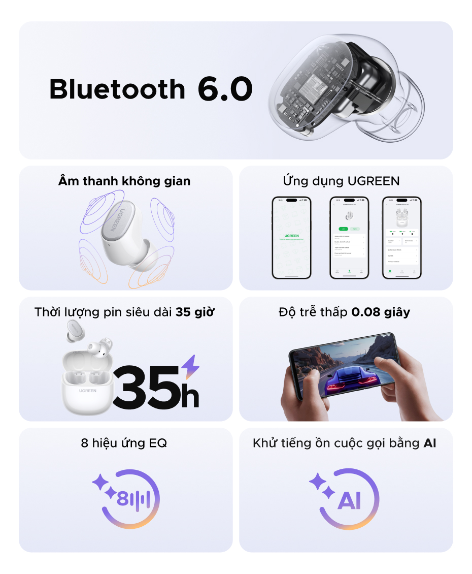 Tai nghe UGREEN Dots Bluetooth 6.0TWS Hỗ trợ 4 Mic Bộ mã âm thanh AAC / SBC Âm thanh âm thanh Hi-Pure Âm thanh không gian Âm thanh có độ trễ thấp Điều khiển ứng dụng Tai nghe không dây