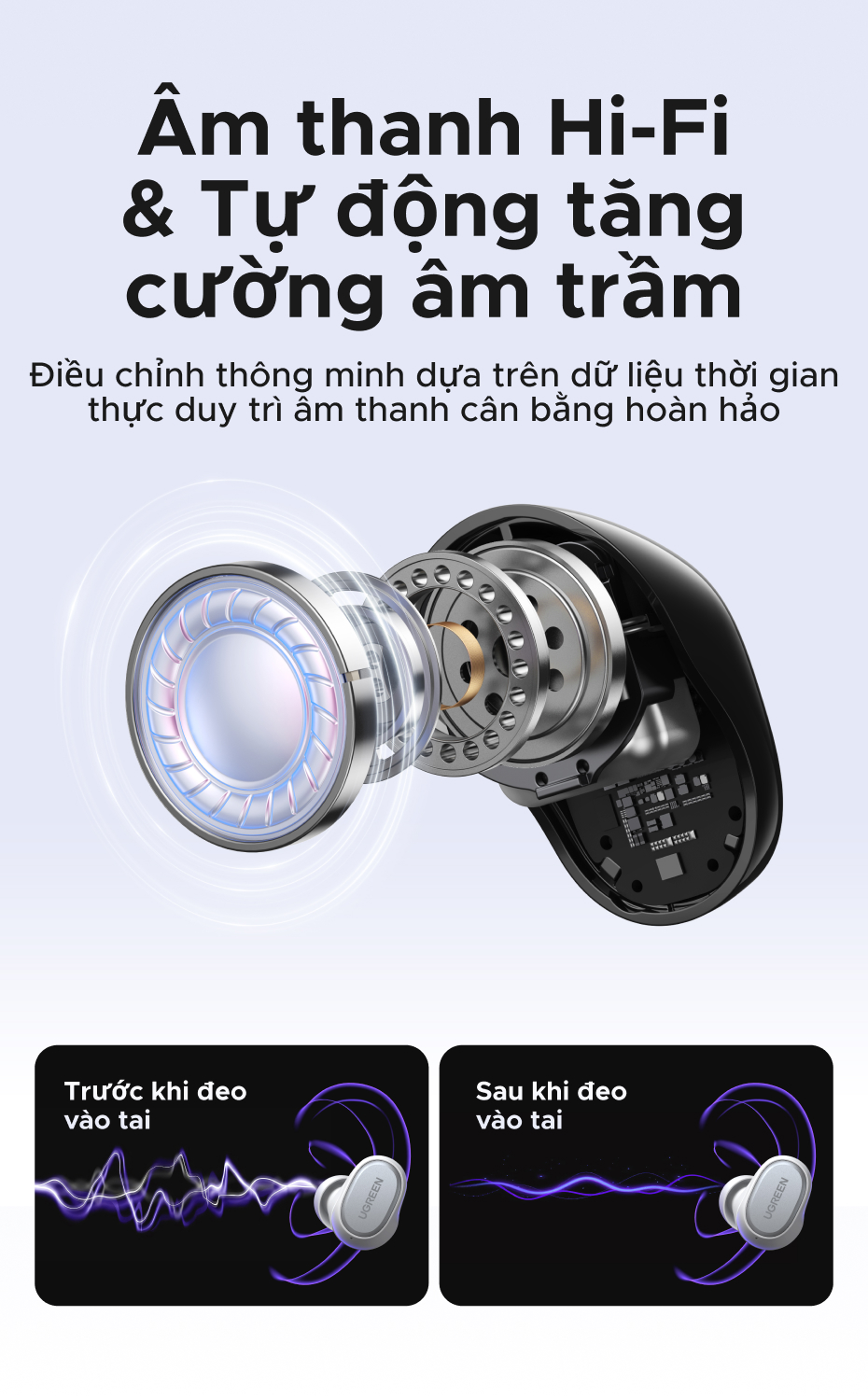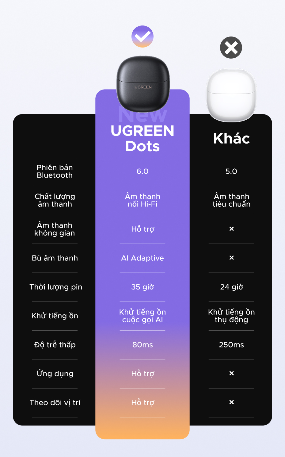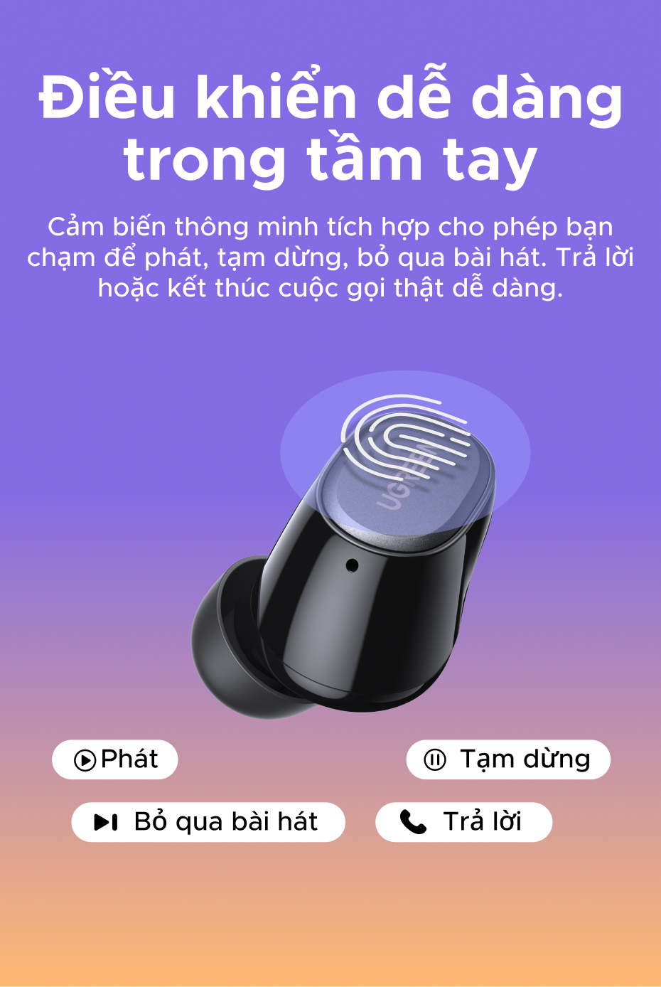 Tai nghe UGREEN Dots Bluetooth 6.0TWS Hỗ trợ 4 Mic Bộ mã âm thanh AAC / SBC Âm thanh âm thanh Hi-Pure Âm thanh không gian Âm thanh có độ trễ thấp Điều khiển ứng dụng Tai nghe không dây