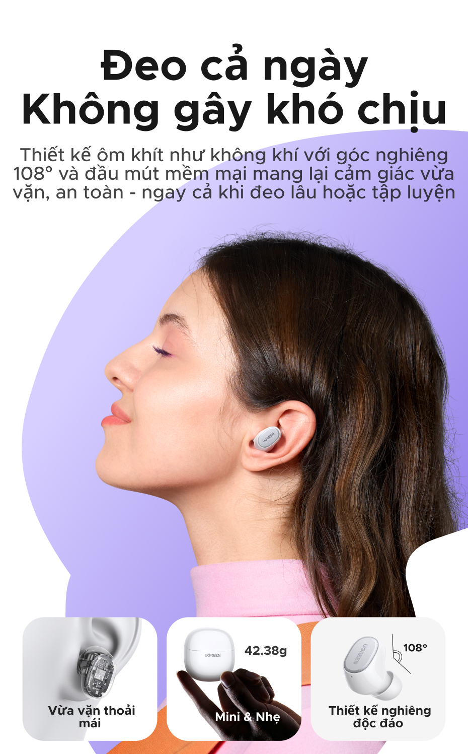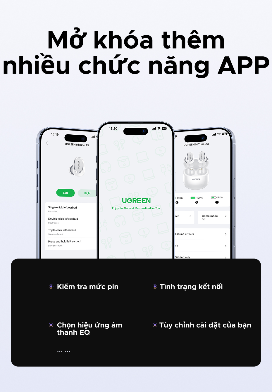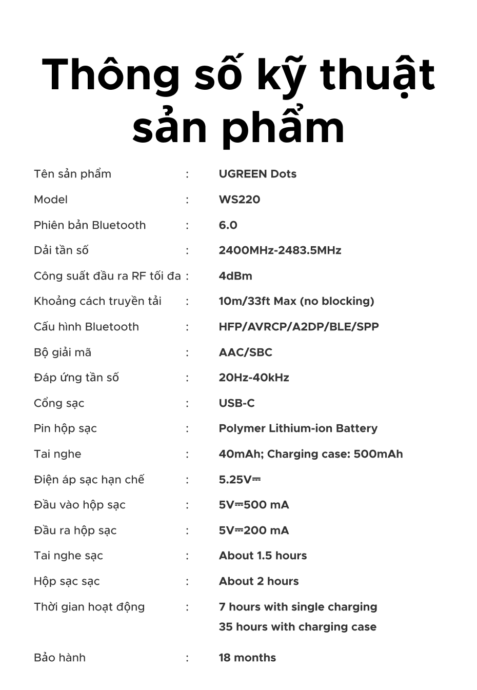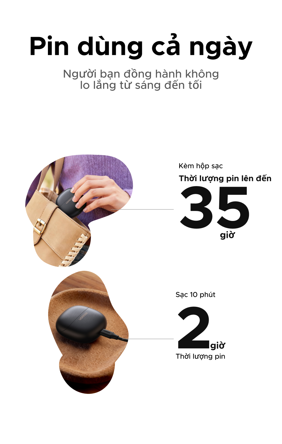 Tai nghe UGREEN Dots Bluetooth 6.0TWS Hỗ trợ 4 Mic Bộ mã âm thanh AAC / SBC Âm thanh âm thanh Hi-Pure Âm thanh không gian Âm thanh có độ trễ thấp Điều khiển ứng dụng Tai nghe không dây