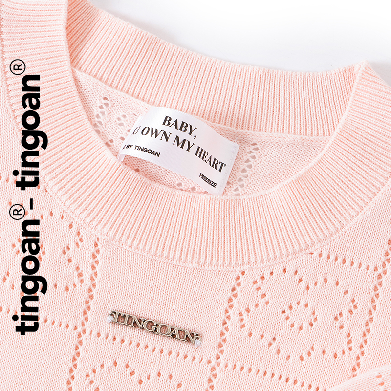 TINGOAN® - Áo len siêu mỏng hồng có logo TINGOAN® ngắn tay cổ tròn vân hoa FLOWER TOP/PK